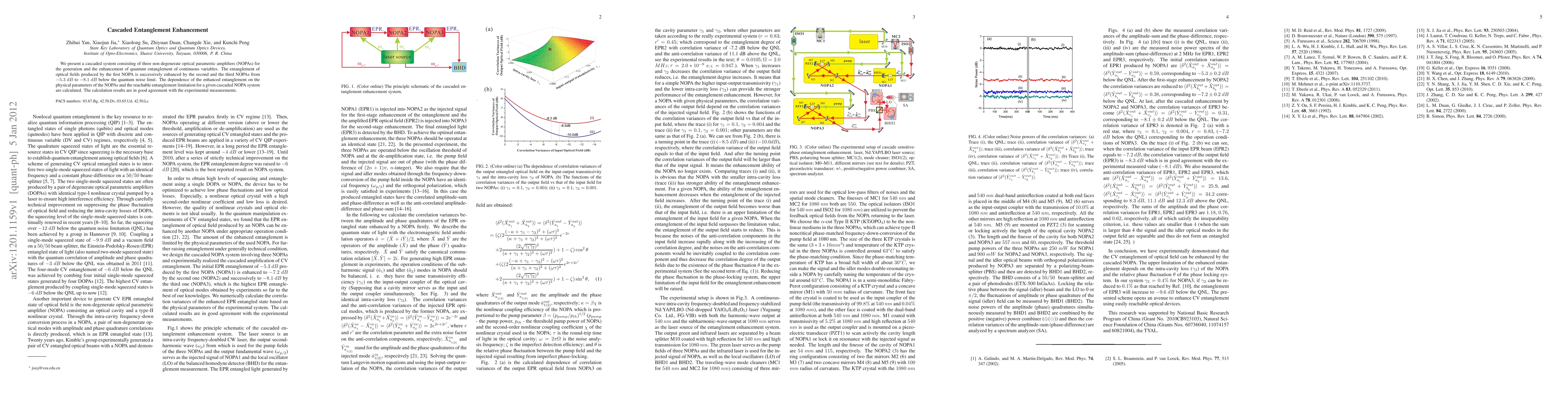 A cascaded system of three non-degenerate optical parametric amplifiers successfully enhances quantum entanglement from -5.3 dB to -8.1 dB below the quantum noise limit.