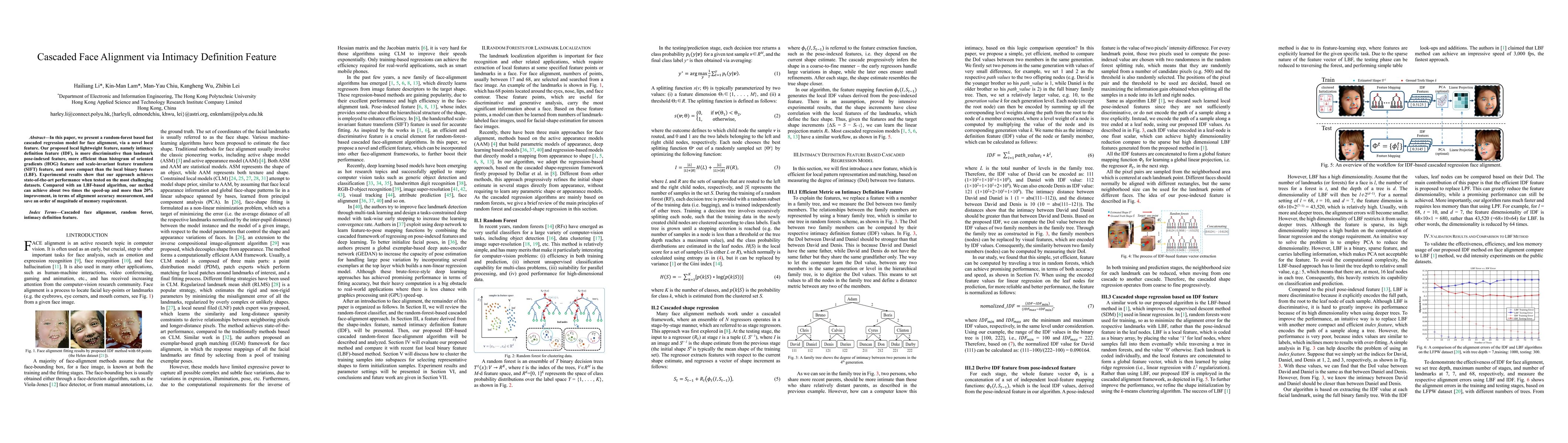A new face alignment model using a novel feature called intimacy definition feature (IDF) outperforms existing methods with improved accuracy and efficiency.