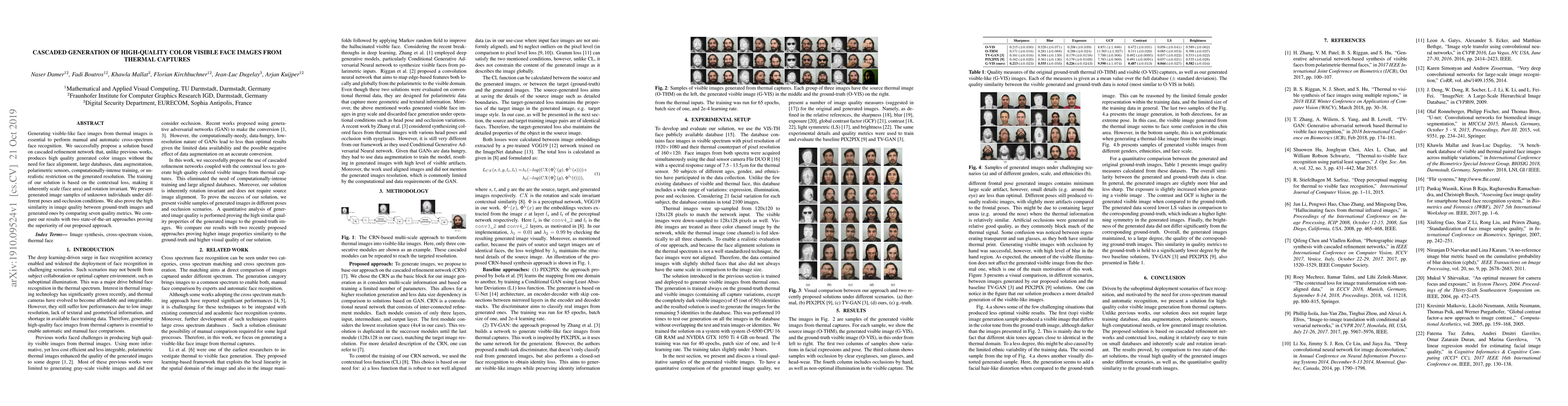 Generating visible-like face images from thermal images is essential to perform manual and automatic cross-spectrum face recognition. We successfully propose a solution based on cascaded refinement network that, unlike previous works, produces high quality generated color images without the need for face alignment, large databases, data augmentation, polarimetric sensors, computationally-intense training, or unrealistic restriction on the generated resolution. The training of our solution is based on the contextual loss, making it inherently scale (face area) and rotation invariant. We present generated image samples of unknown individuals under different poses and occlusion conditions.We also prove the high similarity in image quality between ground-truth images and generated ones by comparing seven quality metrics. We compare our results with two state-of-the-art approaches proving the superiority of our proposed approach.