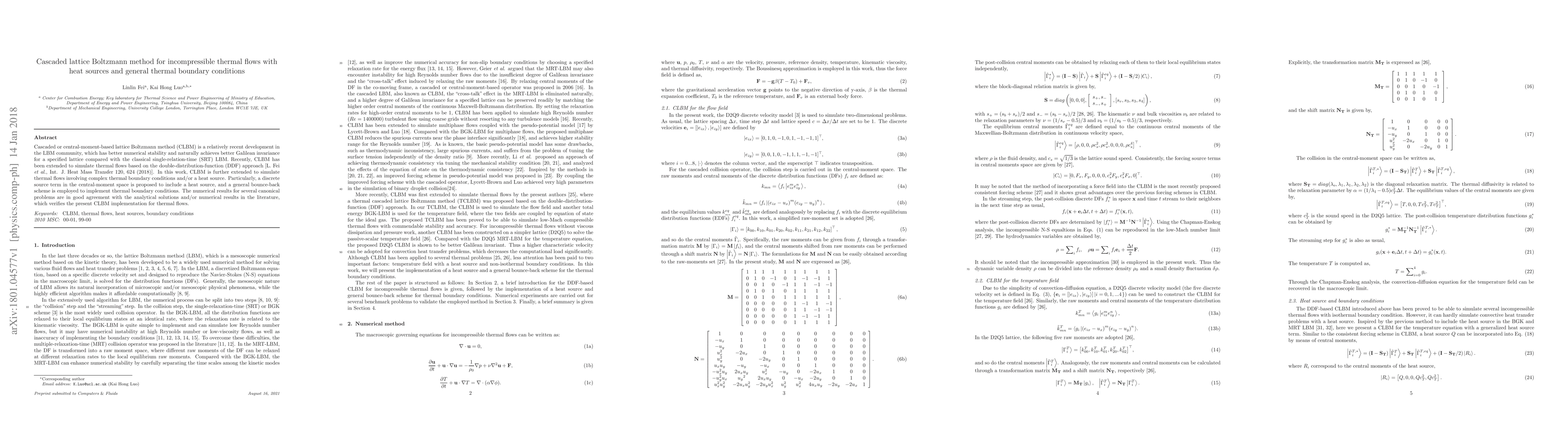 This paper extends the cascaded lattice Boltzmann method (CLBM) to simulate incompressible thermal flows with heat sources and general thermal boundary conditions, introducing a discrete source term and a general bounce-back scheme. Numerical results for benchmark problems validate the method's accuracy and effectiveness.
