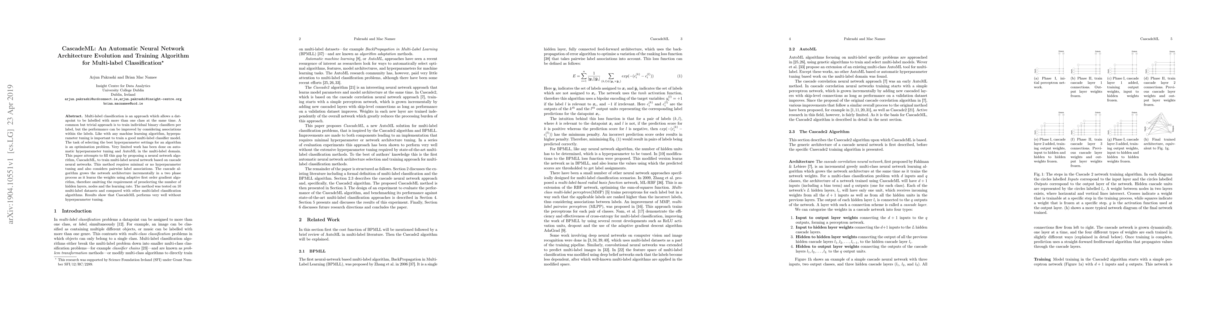 CascadeML proposes a neural network algorithm that automatically evolves and trains multi-label classification models with minimal hyperparameter tuning, outperforming traditional methods on 10 datasets.