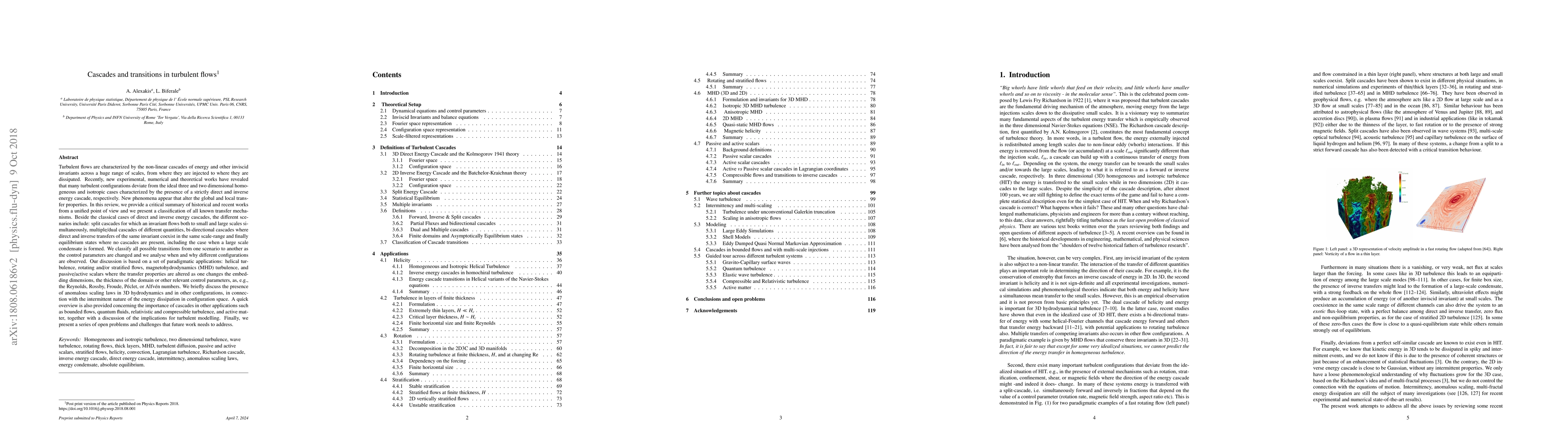 Turbulence is characterized by the non-linear cascades of energy and other inviscid invariants across a huge range of scales, from where they are injected to where they are dissipated. Recently, new experimental, numerical and theoretical works have revealed that many turbulent configurations deviate from the ideal 3D/2D isotropic cases characterized by the presence of a strictly direct/inverse energy cascade, respectively. We review recent works from a unified point of view and we present a classification of all known transfer mechanisms. Beside the classical cases of direct and inverse cascades, the different scenarios include: split cascades to small and large scales simultaneously, multiple/dual cascades of different quantities, bi-directional cascades where direct and inverse transfers of the same invariant coexist in the same scale-range and finally equilibrium states where no cascades are present, including the case when a condensate is formed. We classify all transitions as the control parameters are changed and we analyse when and why different configurations are observed. Our discussion is based on a set of paradigmatic applications: helical turbulence, rotating and/or stratified flows, MHD and passive/active scalars where the transfer properties are altered as one changes the embedding dimensions, the thickness of the domain or other relevant control parameters, as the Reynolds, Rossby, Froude, Peclet, or Alfven numbers. We discuss the presence of anomalous scaling laws in connection with the intermittent nature of the energy dissipation in configuration space. An overview is also provided concerning cascades in other applications such as bounded flows, quantum, relativistic and compressible turbulence, and active matter, together with implications for turbulent modelling. Finally, we present a series of open problems and challenges that future work needs to address.