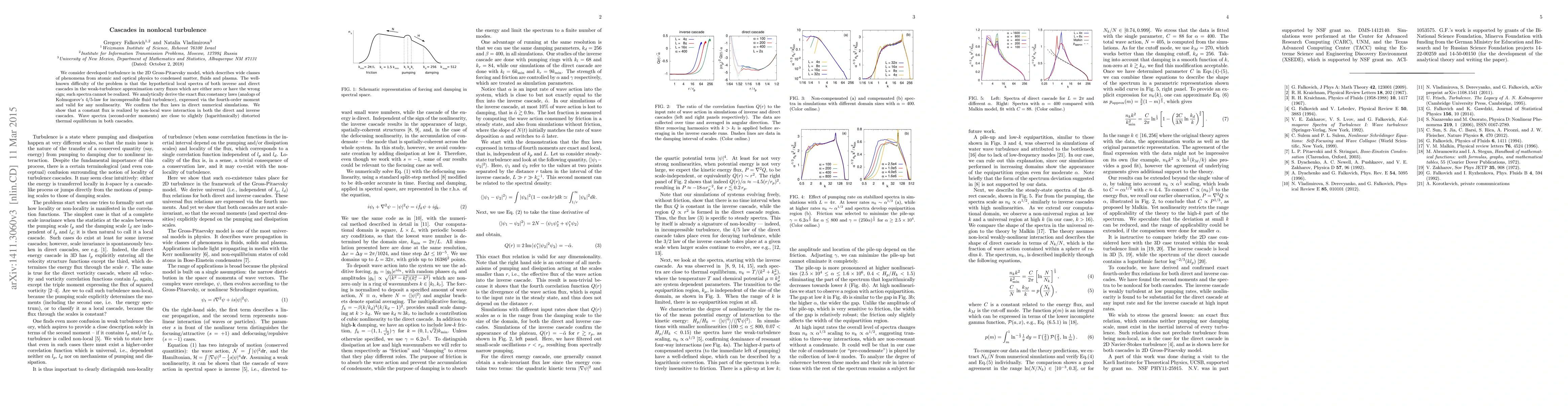 This paper derives exact flux constancy laws for turbulence in the 2D Gross-Pitaevsky model, showing that non-local wave interactions maintain constant flux in both direct and inverse cascades, and confirms these laws through numerical simulations.