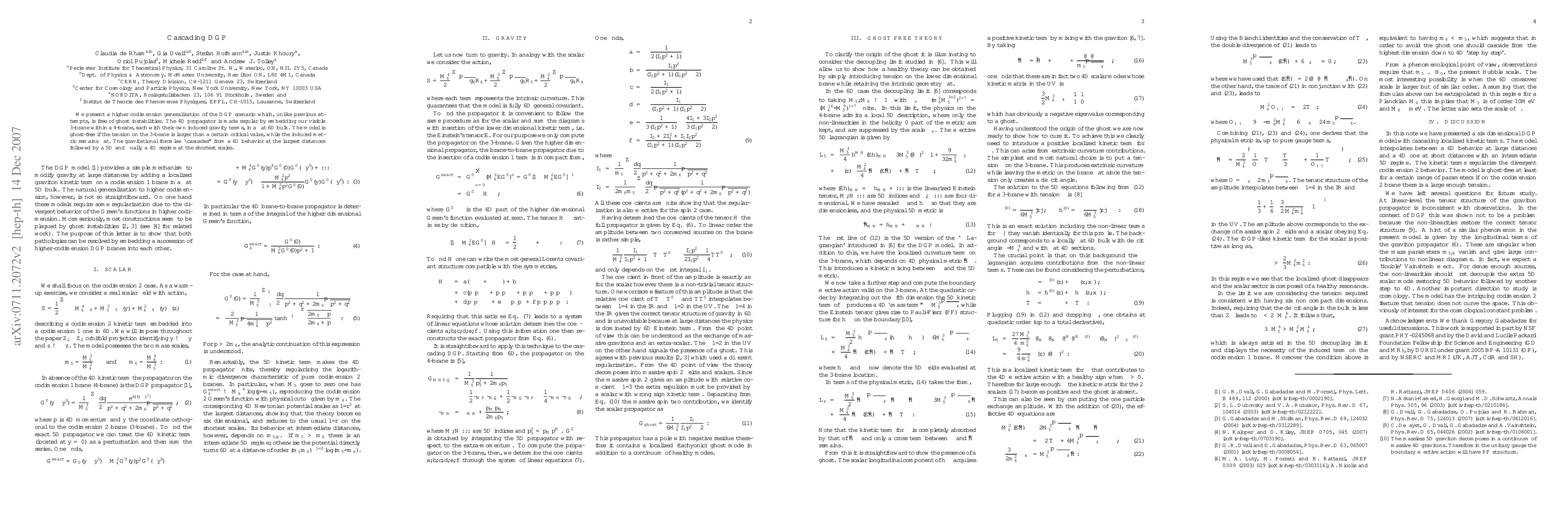 We present a higher codimension generalization of the DGP scenario which, unlike previous attempts, is free of ghost instabilities. The 4D propagator is made regular by embedding our visible 3-brane within a 4-brane, each with their own induced gravity terms, in a flat 6D bulk. The model is ghost-free if the tension on the 3-brane is larger than a certain critical value, while the induced metric remains flat. The gravitational force law `cascades' from a 6D behavior at the largest distances followed by a 5D and finally a 4D regime at the shortest scales.