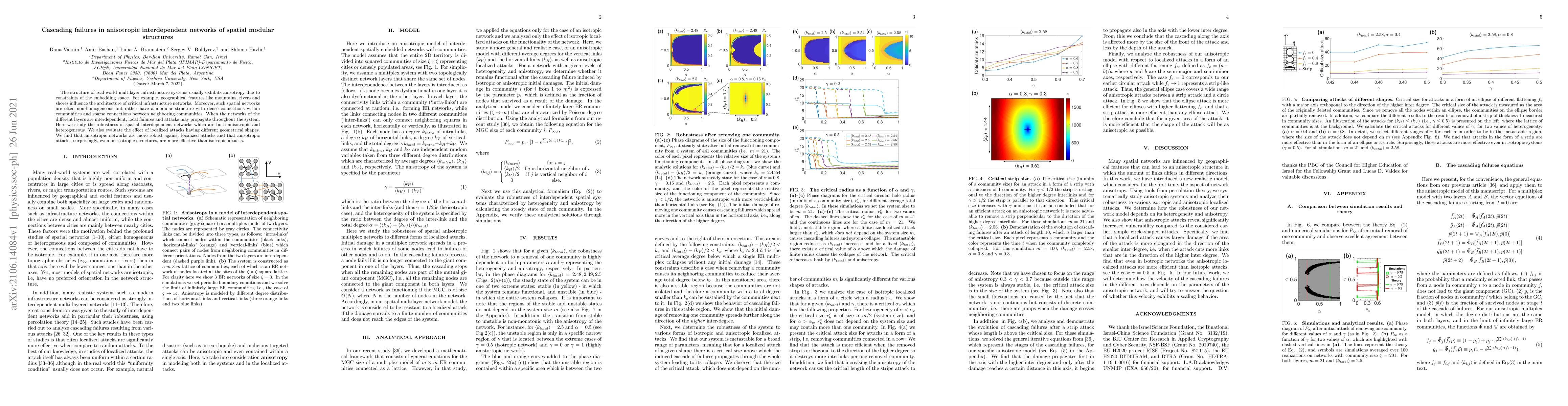 Researchers studied the robustness of anisotropic networks with spatial modular structures, finding they are more resistant to localized attacks than isotropic networks. They also discovered that targeting specific geometrical features can be more effective in disrupting these systems.