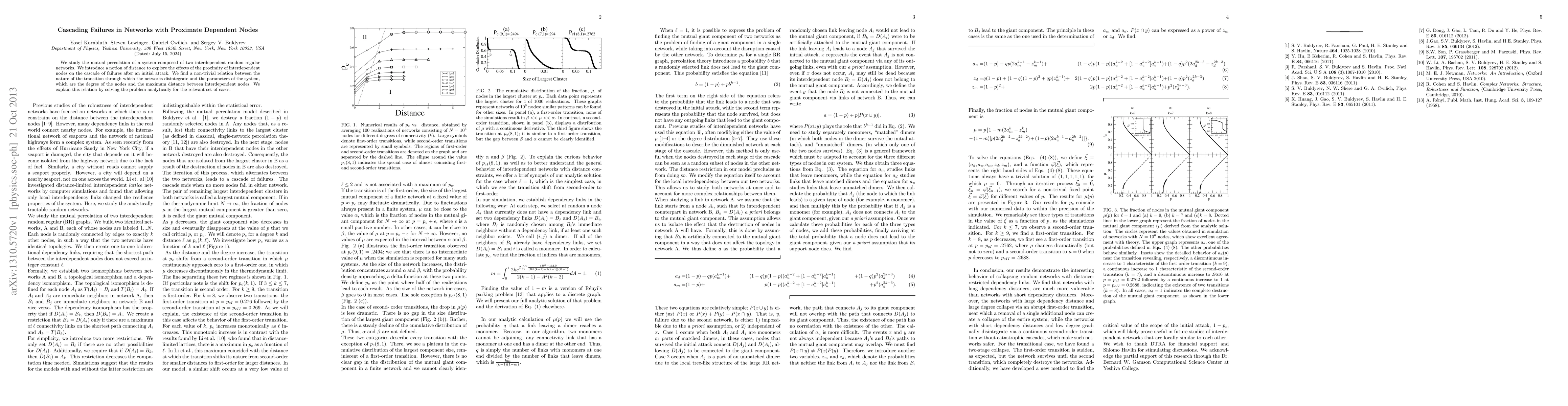 We study the mutual percolation of a system composed of two interdependent random regular networks. We introduce a notion of distance to explore the effects of the proximity of interdependent nodes on the cascade of failures after an initial attack. We find a non-trivial relation between the nature of the transition through which the networks disintegrate and the parameters of the system, which are the degree of the nodes and the maximum distance between interdependent nodes. We explain this relation by solving the problem analytically for the relevant set of cases.