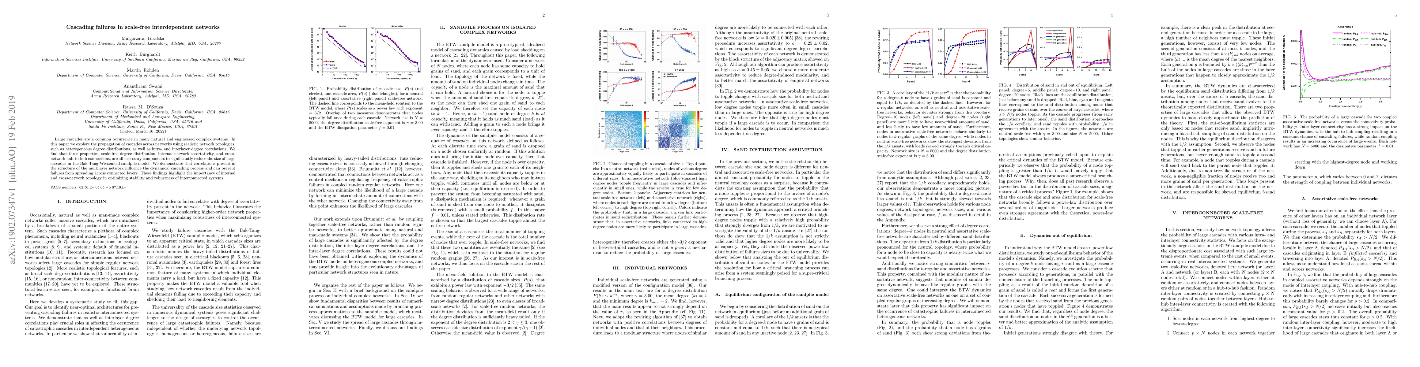 Researchers investigated how cascading failures occur in complex networks and found that specific topological features, such as scale-free degree distribution and cross-network connections, can significantly reduce the size of large cascades.