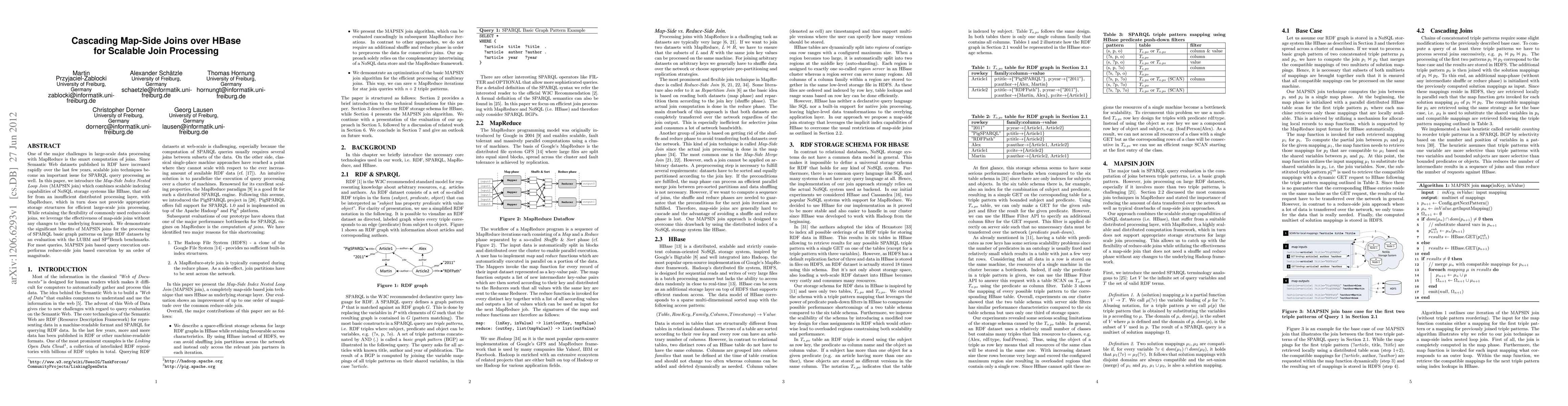 This paper introduces the MAPSIN join technique to efficiently handle large-scale join processing in MapReduce, leveraging the indexing capabilities of NoSQL systems like HBase. Evaluations show MAPSIN join significantly outperforms traditional reduce-side joins in processing SPARQL queries on large RDF datasets.