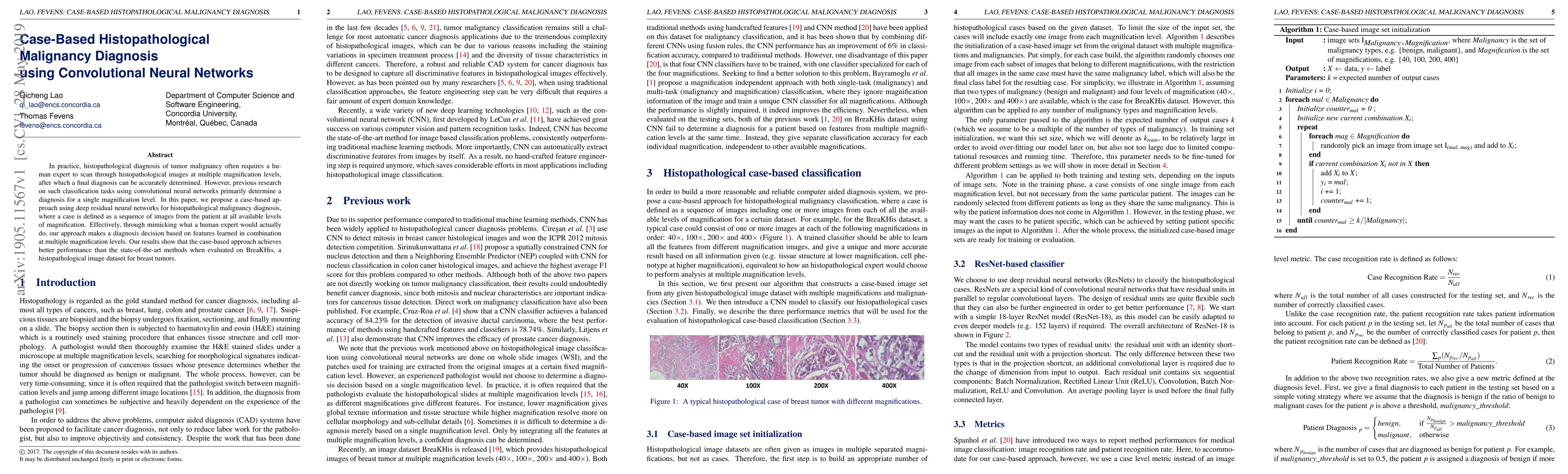 This paper proposes a case-based approach using deep residual neural networks for diagnosing tumor malignancy in histopathological images, considering multiple magnification levels. The method outperforms existing single-level diagnosis techniques, as demonstrated on the BreaKHis dataset for breast tumors.