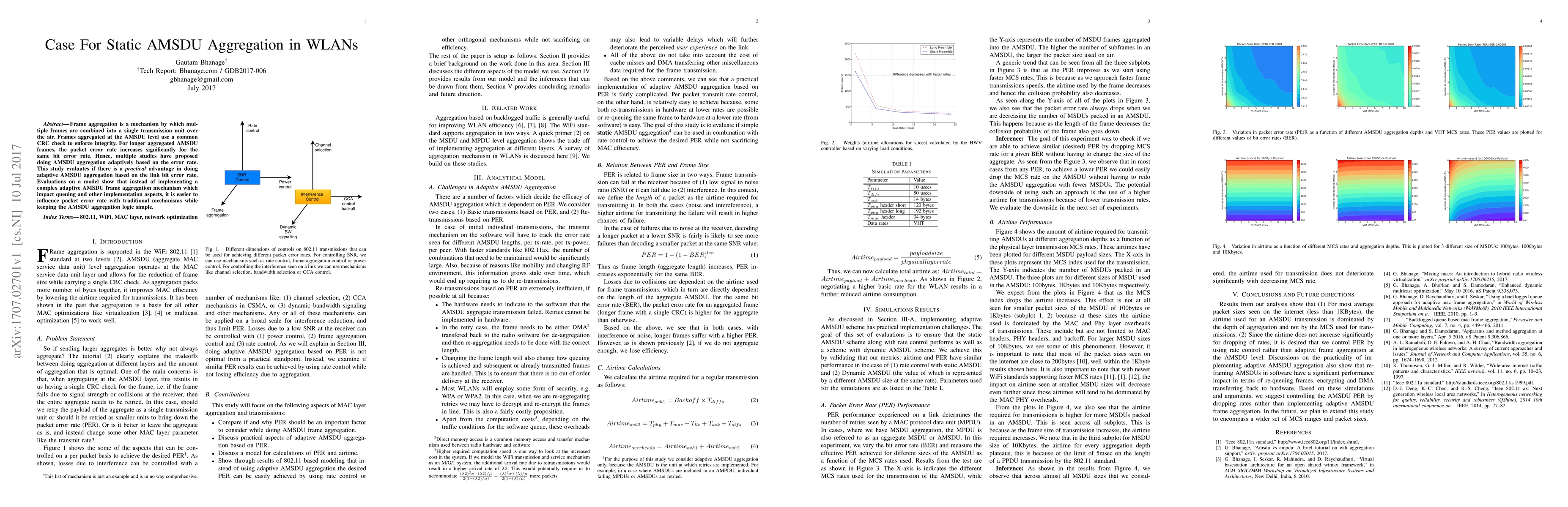 Frame aggregation is a mechanism by which multiple frames are combined into a single transmission unit over the air. Frames aggregated at the AMSDU level use a common CRC check to enforce integrity. For longer aggregated AMSDU frames, the packet error rate increases significantly for the same bit error rate. Hence, multiple studies have proposed doing AMSDU aggregation adaptively based on the error rate. This study evaluates if there is a \emph{practical} advantage in doing adaptive AMSDU aggregation based on the link bit error rate. Evaluations on a model show that instead of implementing a complex adaptive AMSDU frame aggregation mechanism which impact queuing and other implementation aspects, it is easier to influence packet error rate with traditional mechanisms while keeping the AMSDU aggregation logic simple.