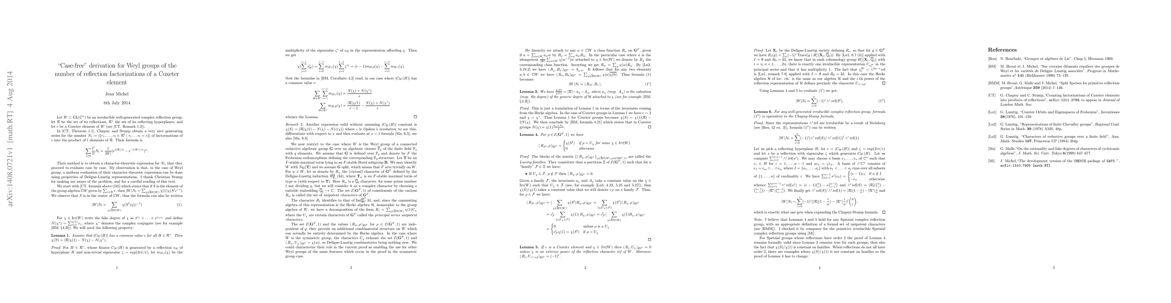 Chapuy and Stump have given a nice generating series for the number of factorisations of a Coxeter element as a product of reflections. Their method is to evaluate case by case a character-theoretic expression. The goal of this note is to give a uniform evaluation of their character-theoretic expression in the case of Weyl groups, by using combinatorial properties of Deligne-Lusztig representations.