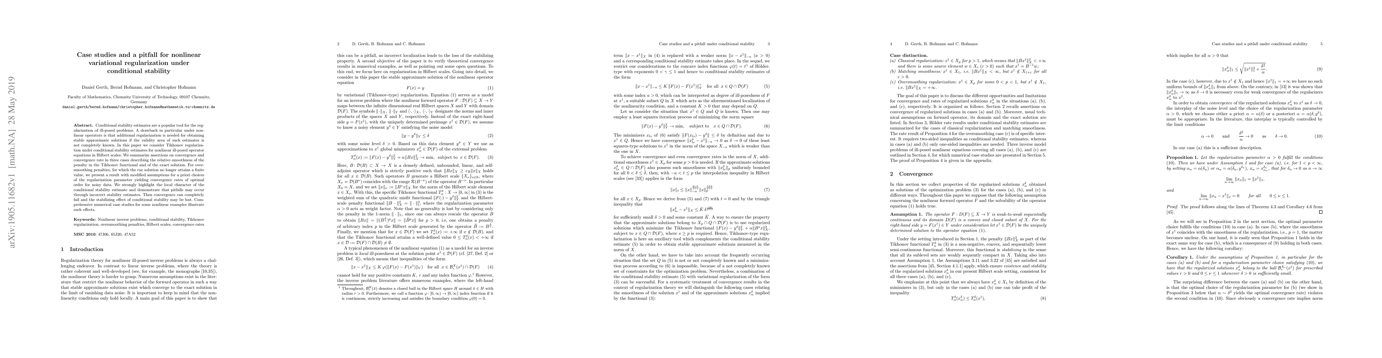This paper examines Tikhonov regularization under conditional stability for nonlinear ill-posed operator equations, highlighting convergence and convergence rates based on the relative smoothness of the penalty and exact solution. It warns of pitfalls from incorrect stability estimates, which can lead to complete convergence failure and loss of the stabilizing effect.