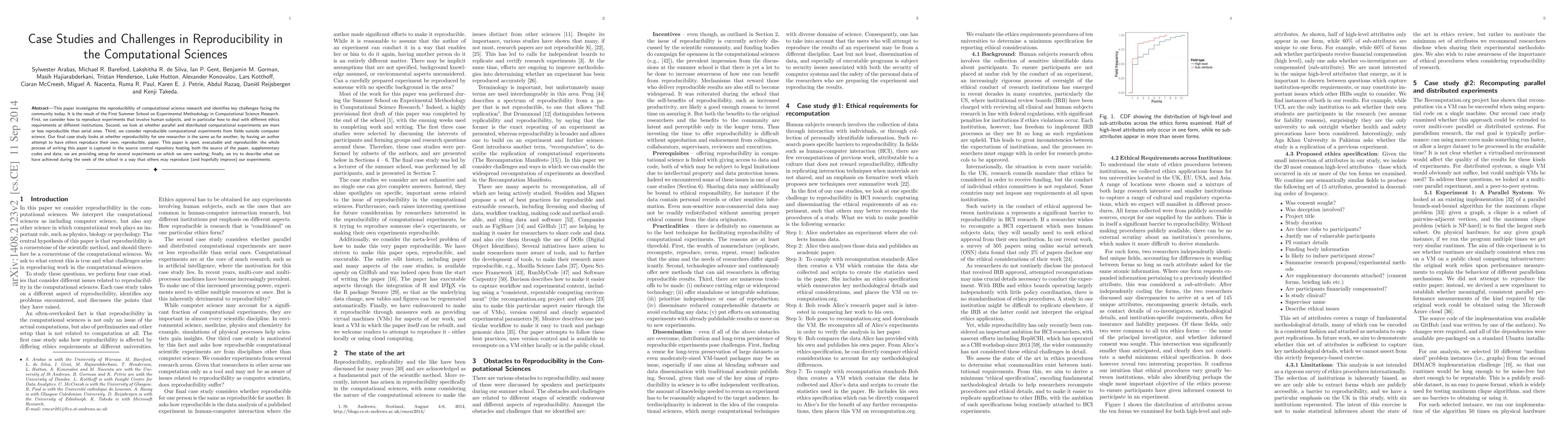 This paper investigates the reproducibility of computational science research and identifies key challenges facing the community today. It is the result of the First Summer School on Experimental Methodology in Computational Science Research (https://blogs.cs.st-andrews.ac.uk/emcsr2014/). First, we consider how to reproduce experiments that involve human subjects, and in particular how to deal with different ethics requirements at different institutions. Second, we look at whether parallel and distributed computational experiments are more or less reproducible than serial ones. Third, we consider reproducible computational experiments from fields outside computer science. Our final case study looks at whether reproducibility for one researcher is the same as for another, by having an author attempt to have others reproduce their own, reproducible, paper. This paper is open, executable and reproducible: the whole process of writing this paper is captured in the source control repository hosting both the source of the paper, supplementary codes and data; we are providing setup for several experiments on which we were working; finally, we try to describe what we have achieved during the week of the school in a way that others may reproduce (and hopefully improve) our experiments.