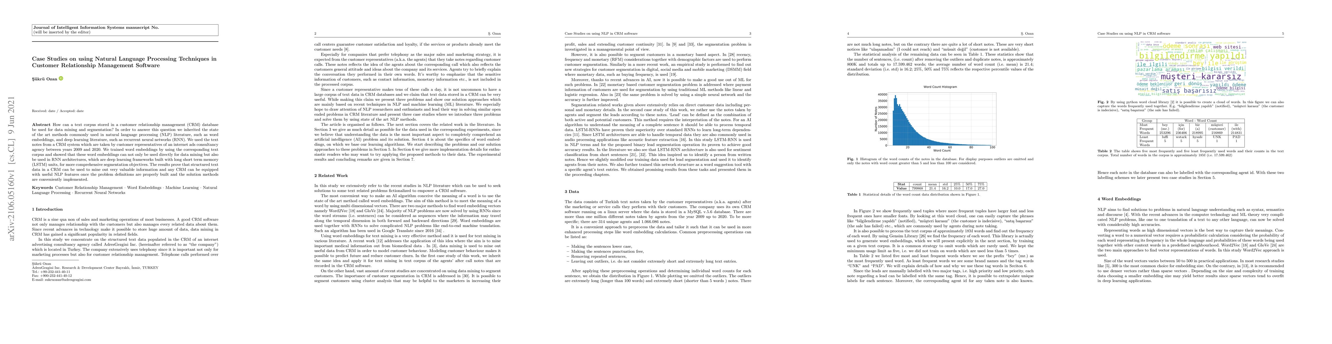 This paper explores the use of natural language processing (NLP) techniques, including word embeddings and recurrent neural networks (RNN) with LSTM units, to mine and segment data from CRM text notes. The study demonstrates that these NLP methods can extract valuable information from CRM databases, enhancing customer relationship management.