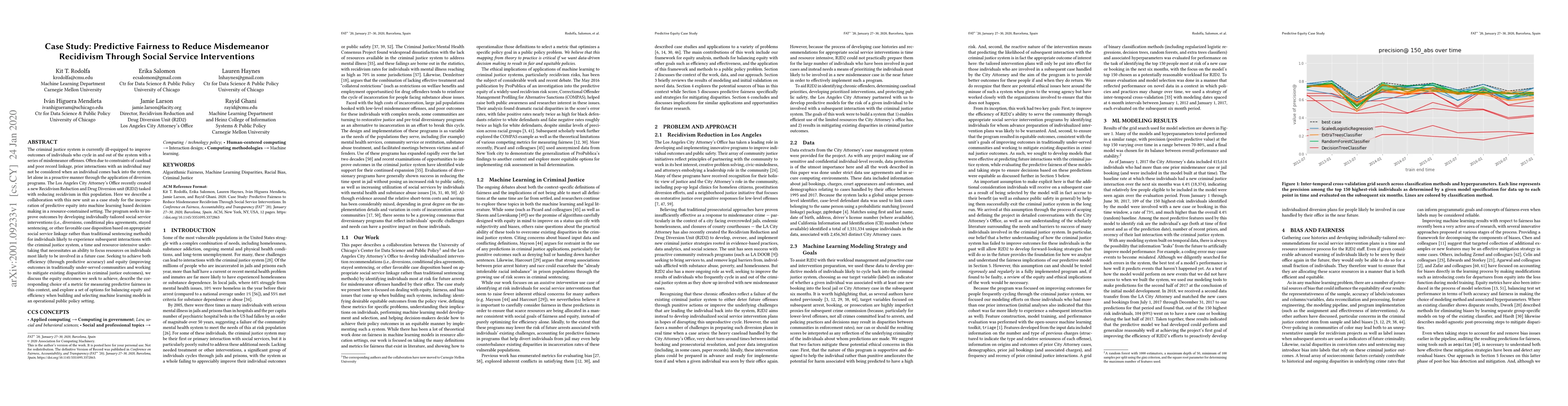 This case study explores the Los Angeles City Attorney's Office's new Recidivism Reduction and Drug Diversion unit (R2D2) aimed at reducing misdemeanor recidivism through tailored social service interventions. The study emphasizes the integration of predictive fairness in machine learning to balance efficiency and equity, focusing on improving outcomes for underserved communities while mitigating existing disparities in criminal justice.