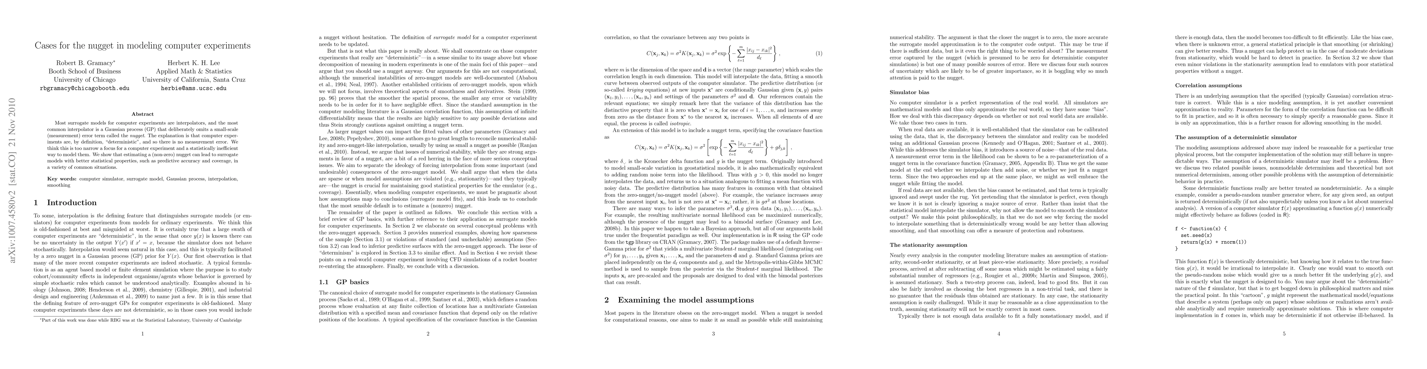 This paper argues that including a nugget term in Gaussian process models for computer experiments can improve statistical properties like predictive accuracy and coverage, challenging the conventional view that computer experiments are deterministic and thus do not require a nugget term.