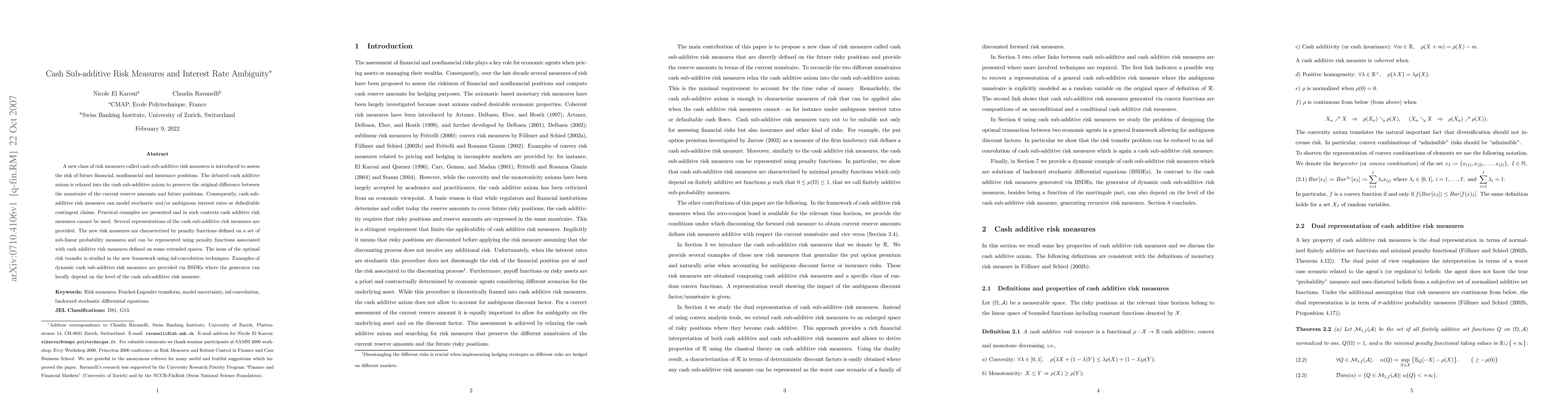 The novelty of this work lies in the introduction of cash sub-additive risk measures, which relax the cash additive axiom, allowing for a more flexible and realistic modeling of risks associated with future positions under ambiguity in interest rates or defaultable claims.