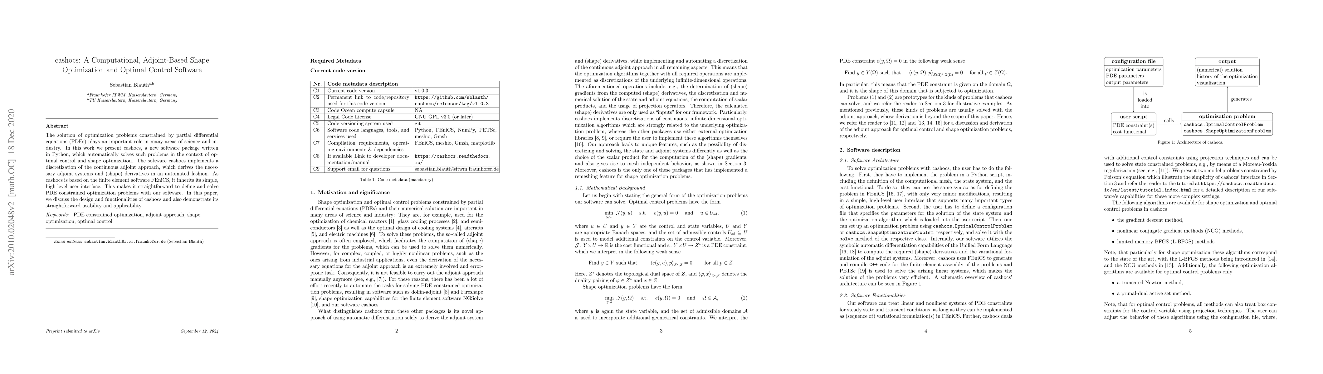 cashocs is a new software package that automates solving optimization problems constrained by PDEs through continuous adjoint approach, making it easy for users to define and solve such problems with its straightforward user interface.
