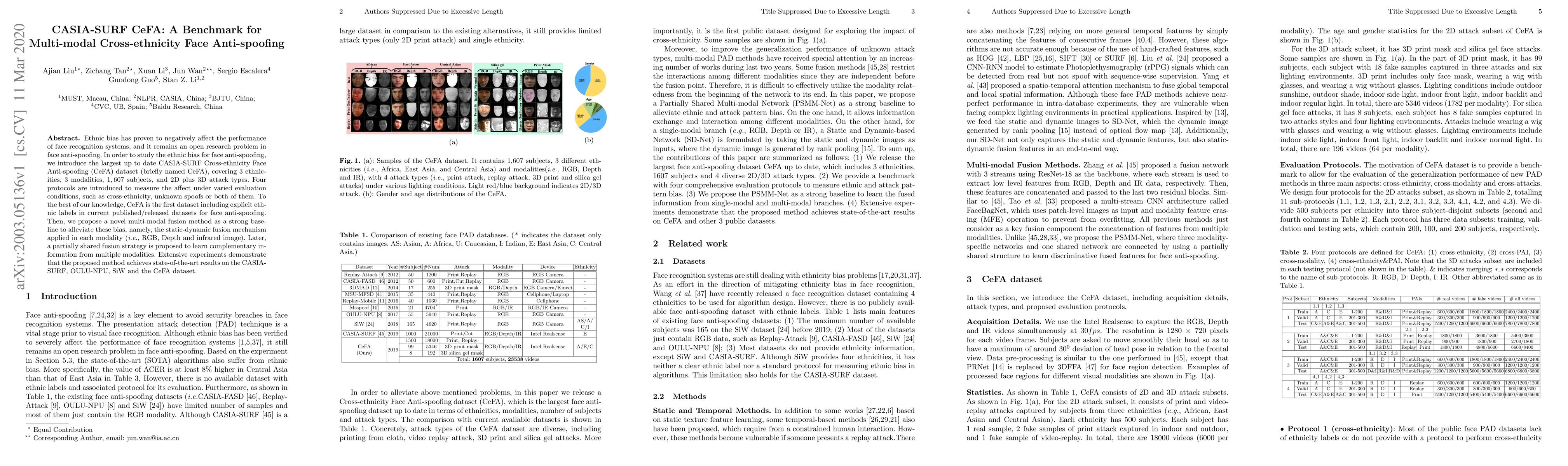 The CASIA-SURF CeFA dataset introduces a benchmark for studying ethnic bias in face anti-spoofing across multiple ethnicities and modalities. A novel multi-modal fusion method is proposed to mitigate ethnic bias, achieving state-of-the-art results on various datasets.