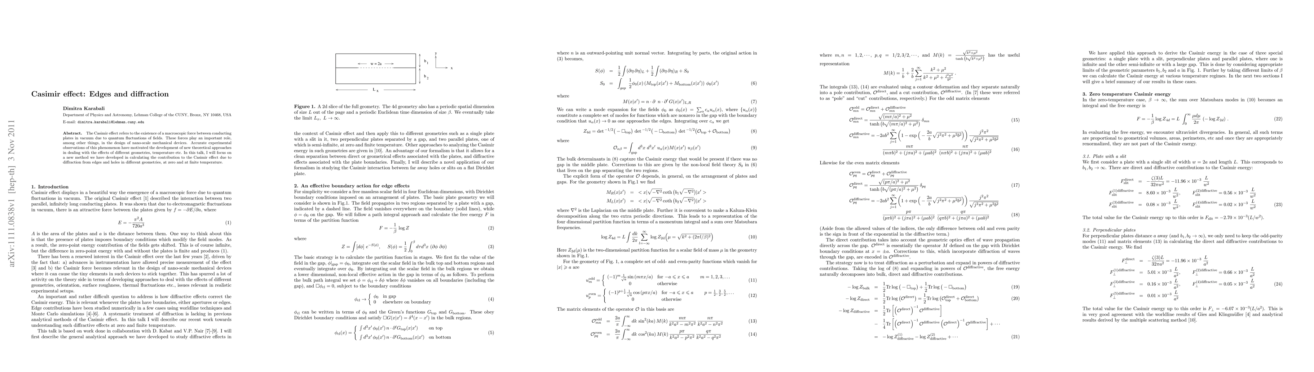The Casimir effect is a macroscopic force between conducting plates in vacuum caused by quantum fluctuations. A new method has been developed to calculate the Casimir effect's contribution from diffraction at edges and holes, applicable at both zero and finite temperatures.