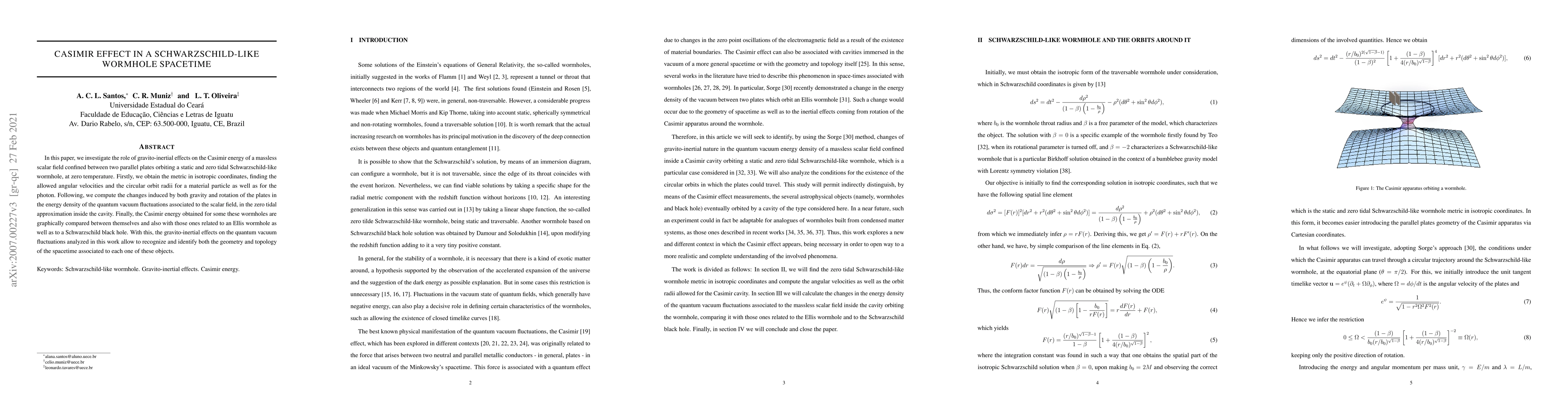 In this paper, we investigate the role of gravito-inertial effects on the Casimir energy of a massless scalar field confined between two parallel plates orbiting a static and zero tidal Schwarzschild-like wormhole, at zero temperature. Firstly, we obtain the metric in isotropic coordinates, finding the allowed angular velocities and the circular orbit radii for a material particle as well as for the photon. Following, we compute the changes induced by both gravity and rotation of the plates in the energy density of the quantum vacuum fluctuations associated to the scalar field, in the zero tidal approximation inside the cavity. Finally, the Casimir energy obtained for some these wormholes are graphically compared between themselves and also with those ones related to an Ellis wormhole as well as to a Schwarzschild black hole. With this, the gravito-inertial effects on the quantum vacuum fluctuations analyzed in this work allow to recognize and identify both the geometry and topology of the spacetime associated to each one of these objects.