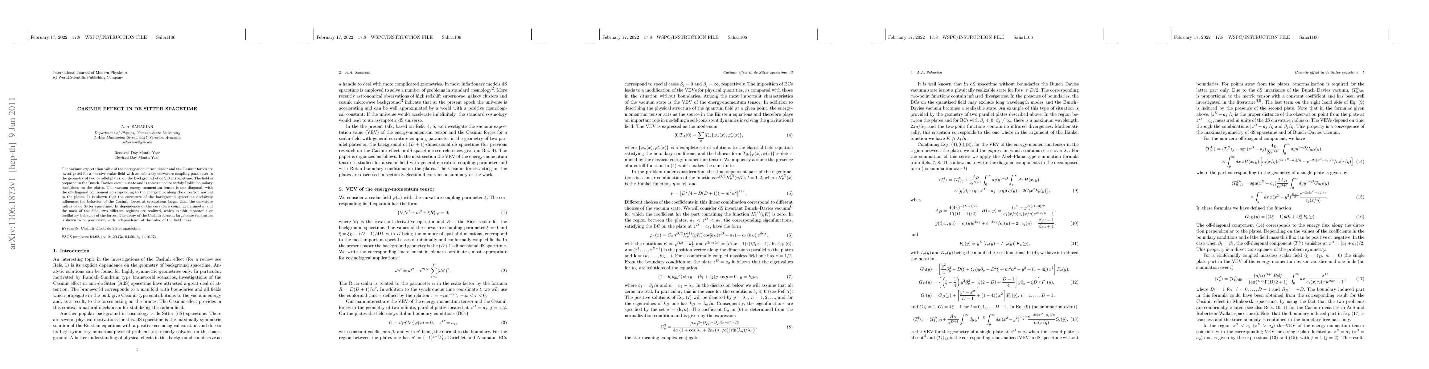 This paper investigates the Casimir effect in de Sitter spacetime, revealing that the background spacetime curvature significantly influences the Casimir forces when plate separations exceed the curvature radius. The study identifies two regimes based on the curvature coupling parameter and field mass, showing either monotonic or oscillatory behavior of the forces, with a power-law decay at large separations.