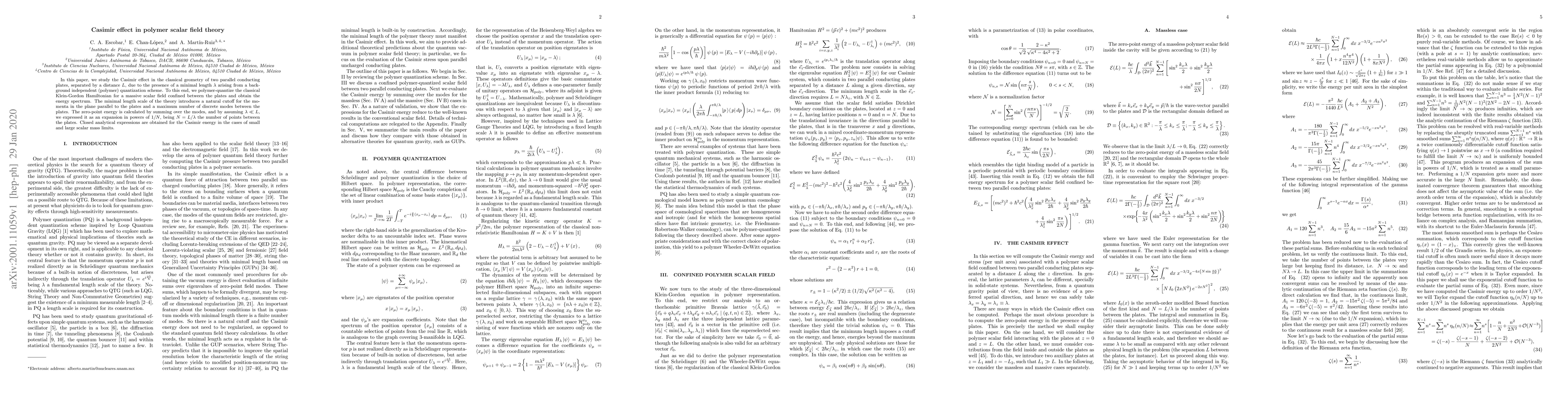 In this paper, we study the Casimir effect in the classical geometry of two parallel conducting plates, separated by a distance $L$, due to the presence of a minimal length $\lambda$ arising from a background independent (polymer) quantization scheme. To this end, we polymer-quantize the classical Klein-Gordon Hamiltonian for a massive scalar field confined between the plates and obtain the energy spectrum. The minimal length scale of the theory introduces a natural cutoff for the momenta in the plane parallel to the plates and a maximum number of discrete modes between the plates. The zero-point energy is calculated by summing over the modes, and by assuming $\lambda \ll L$, we expressed it as an expansion in powers of $1/N$, being $N=L/ \lambda$ the number of points between the plates. Closed analytical expressions are obtained for the Casimir energy in the cases of small and large scalar mass limits.