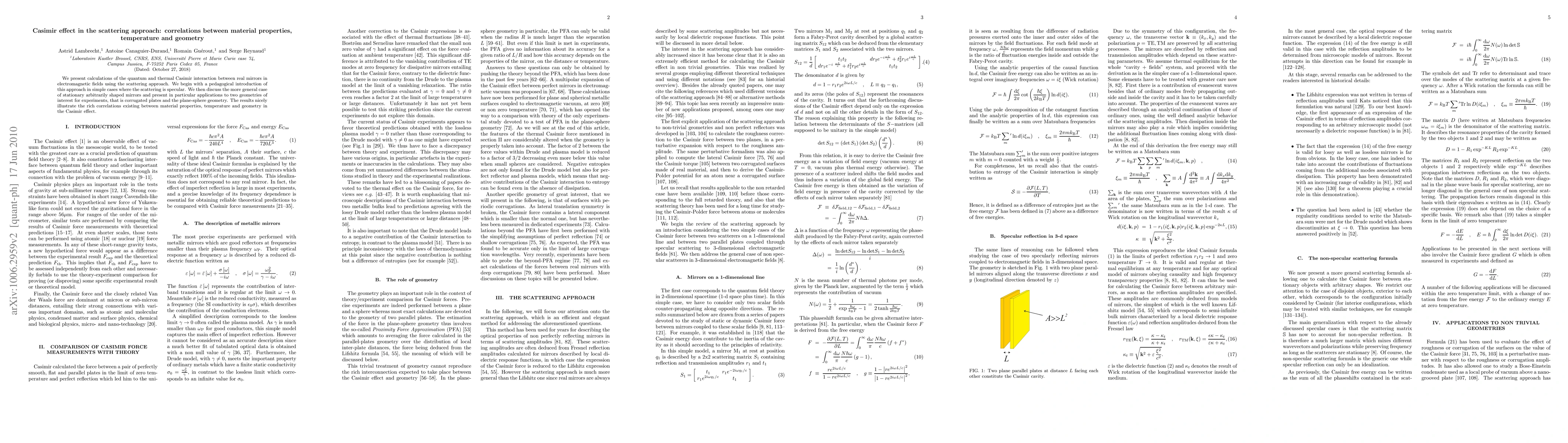 We present calculations of the quantum and thermal Casimir interaction between real mirrors in electromagnetic fields using the scattering approach. We begin with a pedagogical introduction of this approach in simple cases where the scattering is specular. We then discuss the more general case of stationary arbitrarily shaped mirrors and present in particular applications to two geometries of interest for experiments, that is corrugated plates and the plane-sphere geometry. The results nicely illustrate the rich correlations existing between material properties, temperature and geometry in the Casimir effect.