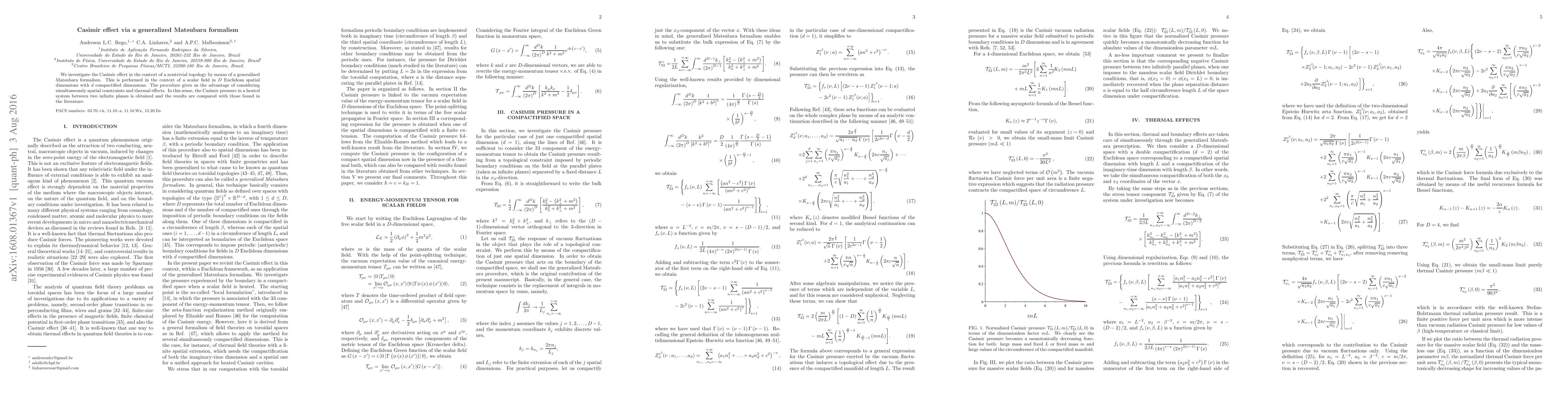 We investigate the Casimir effect in the context of a nontrivial topology by means of a generalized Matsubara formalism. This is performed in the context of a scalar field in $D$ Euclidean spatial dimensions with $d$ compactified dimensions. The procedure gives us the advantage of considering simultaneously spatial constraints and thermal effects. In this sense, the Casimir pressure in a heated system between two infinite planes is obtained and the results are compared with those found in the literature.