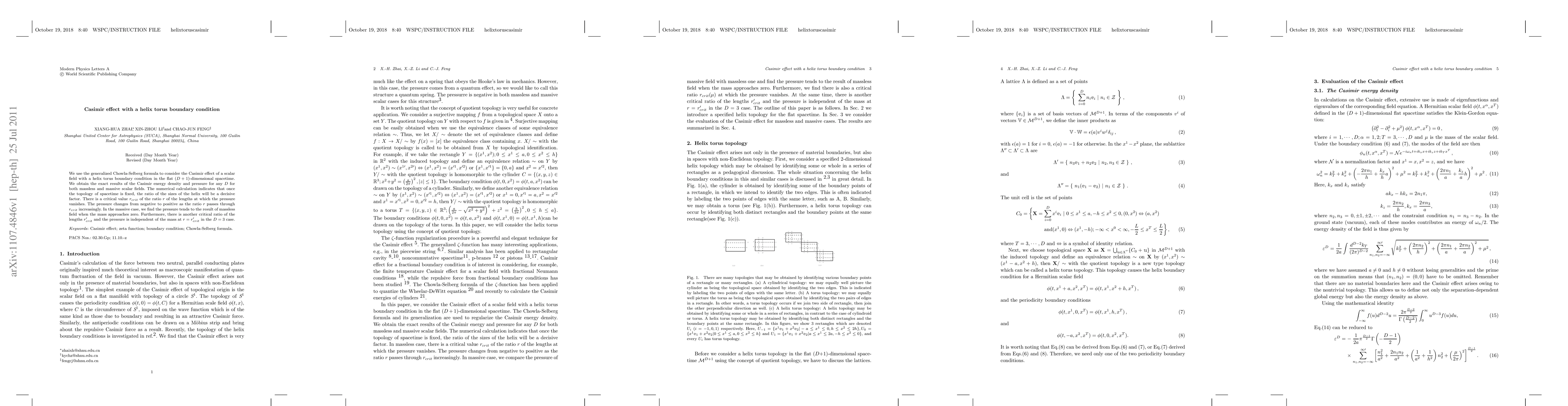 This paper investigates the Casimir effect for a scalar field with a helix torus boundary condition in flat ($D+1$)-dimensional spacetime, yielding exact results for energy density and pressure. The study reveals a critical ratio of helix sizes where pressure transitions from negative to positive, with distinct critical values influencing pressure behavior for massless and massive fields.