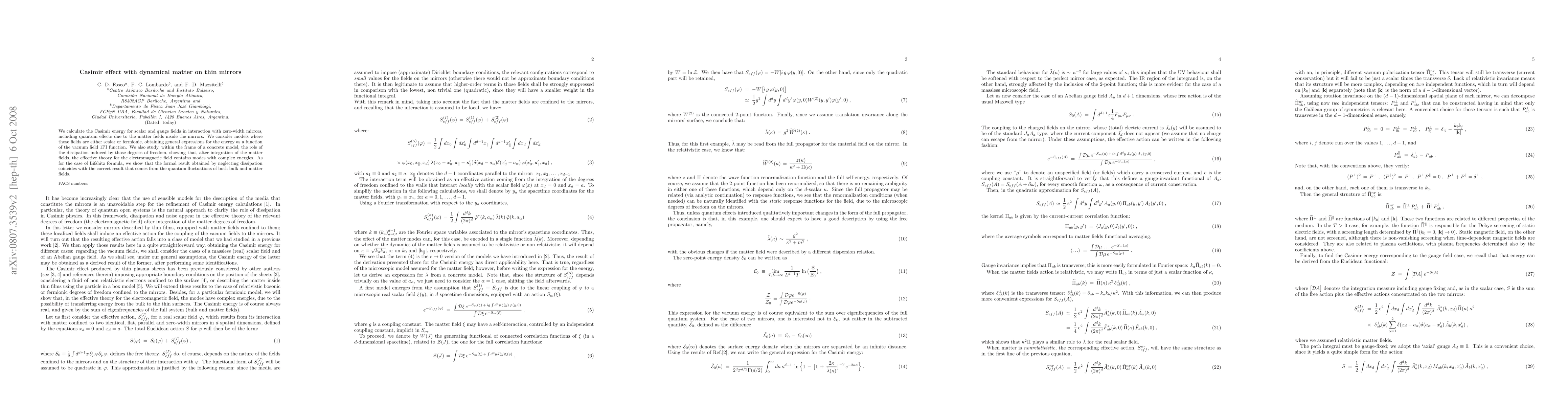 We calculate the Casimir energy for scalar and gauge fields in interaction with zero-width mirrors, including quantum effects due to the matter fields inside the mirrors. We consider models where those fields are either scalar or fermionic, obtaining general expressions for the energy as a function of the vacuum field 1PI function. We also study, within the frame of a concrete model, the role of the dissipation induced by those degrees of freedom, showing that, after integration of the matter fields, the effective theory for the electromagnetic field contains modes with complex energies. As for the case of Lifshitz formula, we show that the formal result obtained by neglecting dissipation coincides with the correct result that comes from the quantum fluctuations of both bulk and matter fields.