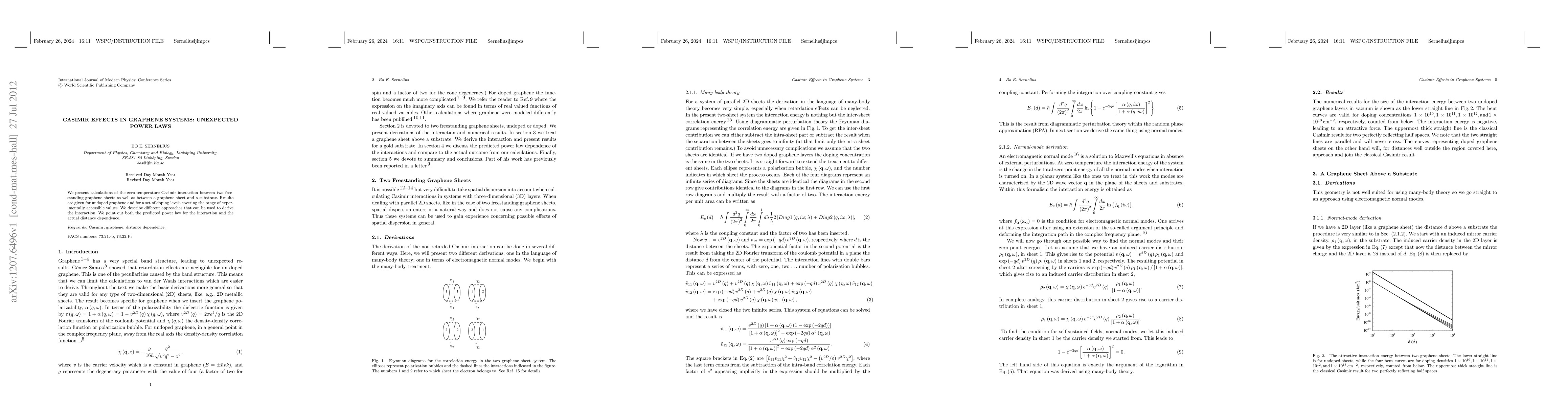 We present calculations of the zero-temperature Casimir interaction between two freestanding graphene sheets as well as between a graphene sheet and a substrate. Results are given for undoped graphene and for a set of doping levels covering the range of experimentally accessible values. We describe different approaches that can be used to derive the interaction. We point out both the predicted power law for the interaction and the actual distance dependence.