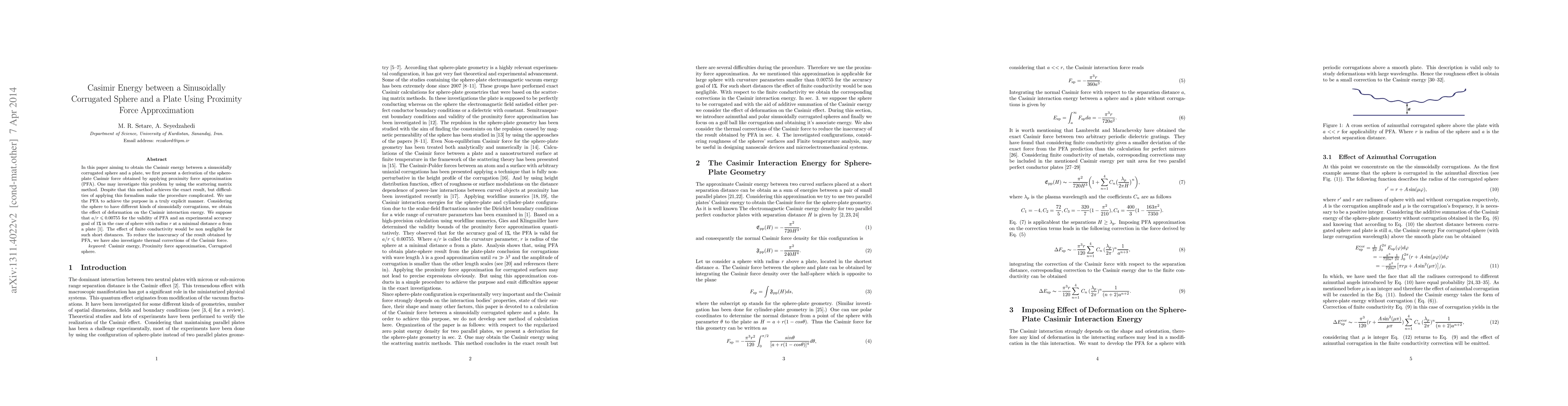 This paper derives the Casimir energy between a sinusoidally corrugated sphere and a plate using the proximity force approximation (PFA) for simplicity. It examines the effect of sphere deformation on the Casimir interaction and considers thermal corrections to improve accuracy.