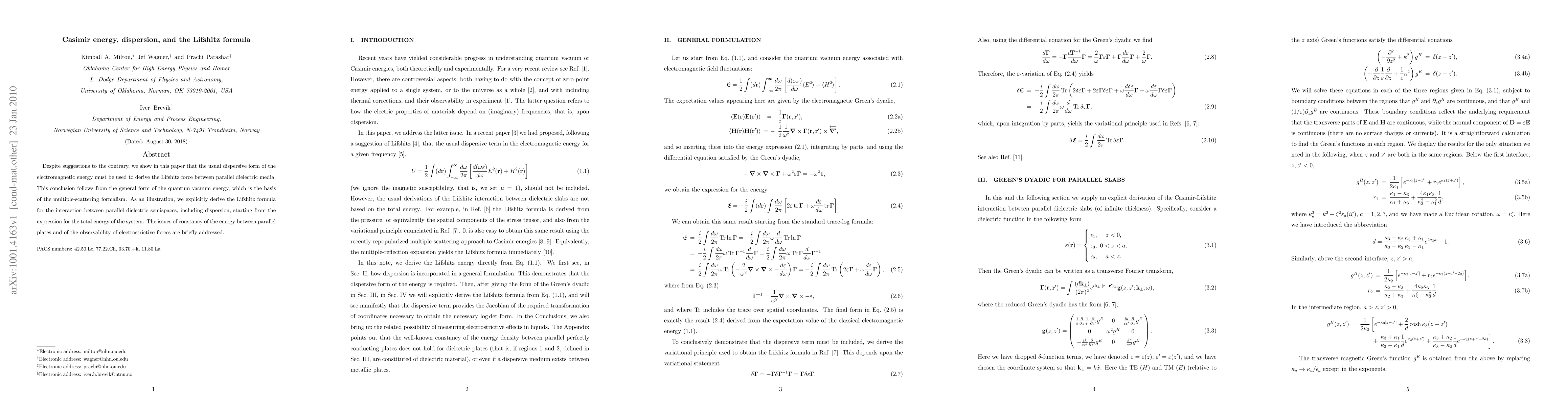 This paper demonstrates that the dispersive form of electromagnetic energy is essential for deriving the Lifshitz force between parallel dielectric media, using the quantum vacuum energy as the foundation. It explicitly derives the Lifshitz formula for dielectric semispaces, addressing the constancy of energy and electrostrictive forces.