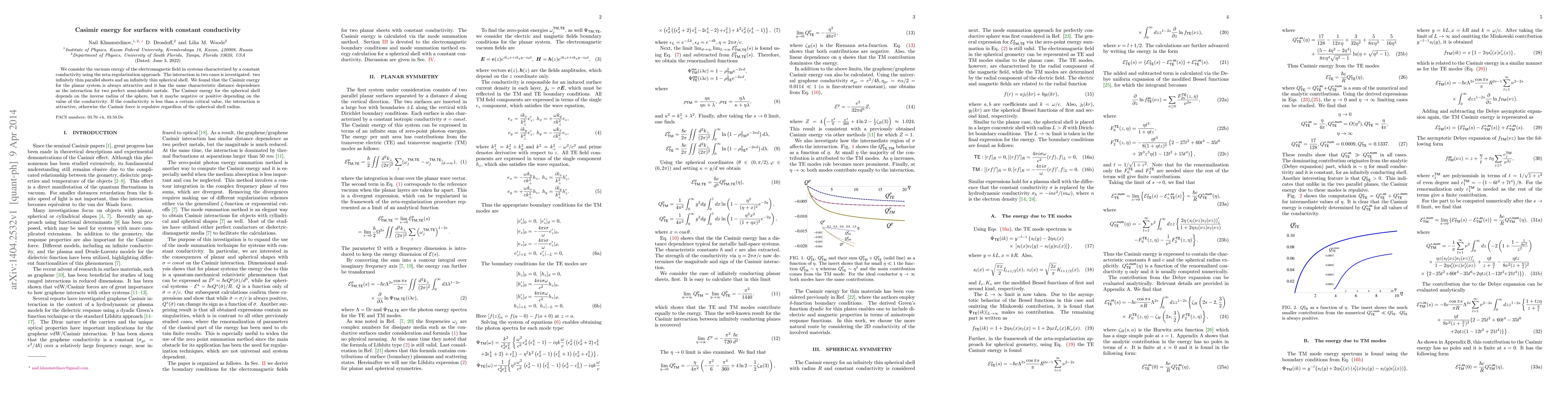 Summary: This study examines the Casimir energy for electromagnetic fields near surfaces with constant conductivity, revealing that planar systems exhibit always attractive interactions while spherical shells show variable attractive or repulsive forces depending on the conductivity level and radius.