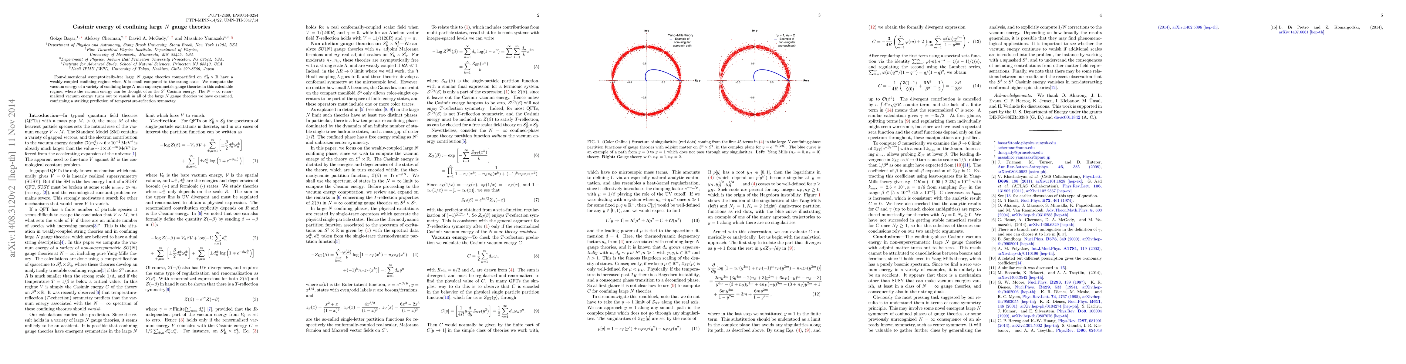 This paper computes the vacuum energy of large $N$ gauge theories in a weakly-coupled confining regime, finding that the $N=\infty$ renormalized vacuum energy vanishes, supporting the prediction of temperature-reflection symmetry.