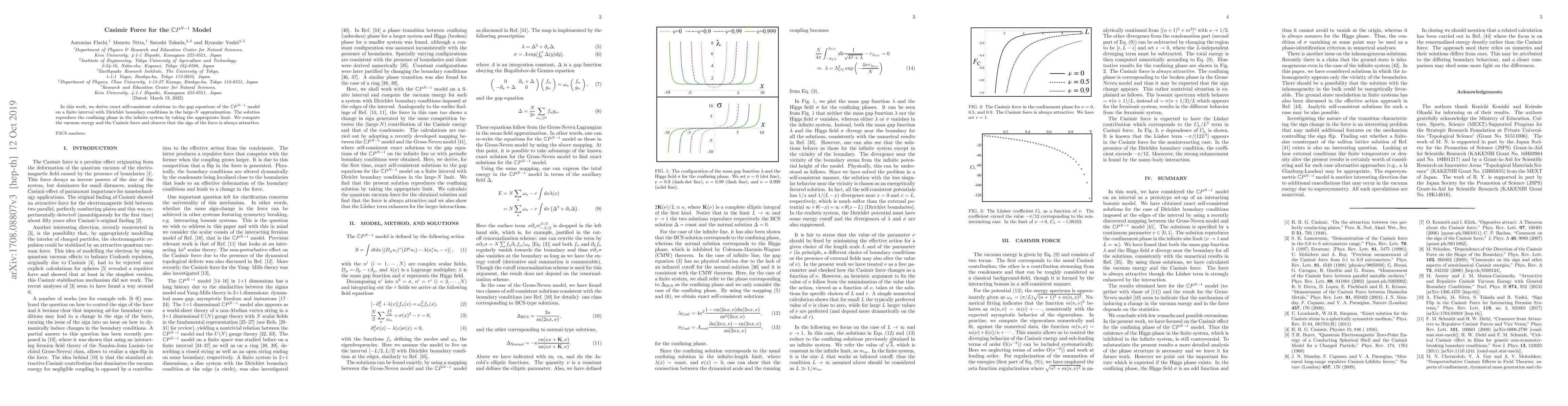 This paper derives exact self-consistent solutions for the $\mathbb{C}P^{N-1}$ model on a finite interval, showing a confining phase in the infinite system. The study computes the vacuum energy and finds that the Casimir force is always attractive.