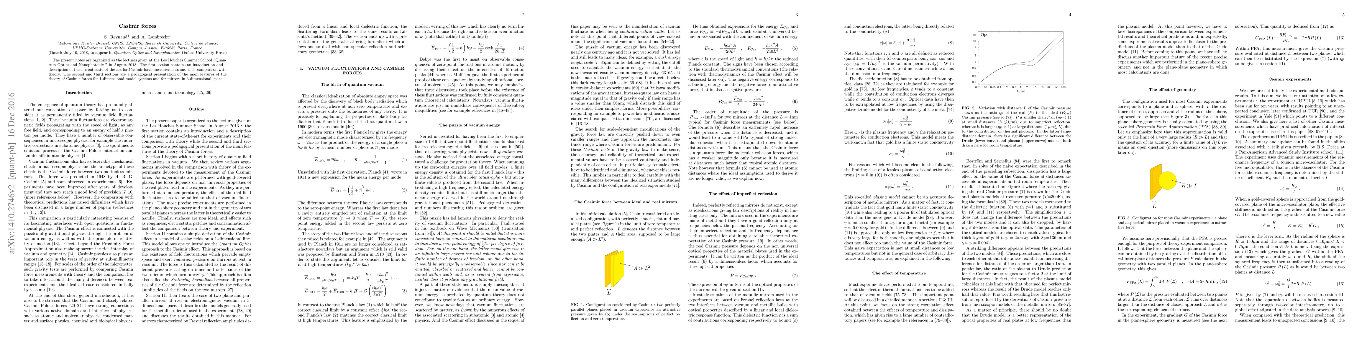 This paper provides an introduction to Casimir forces, reviewing current measurement techniques and comparing them with theoretical models. It also offers a pedagogical explanation of the theory for both 1-dimensional and 3-dimensional systems.