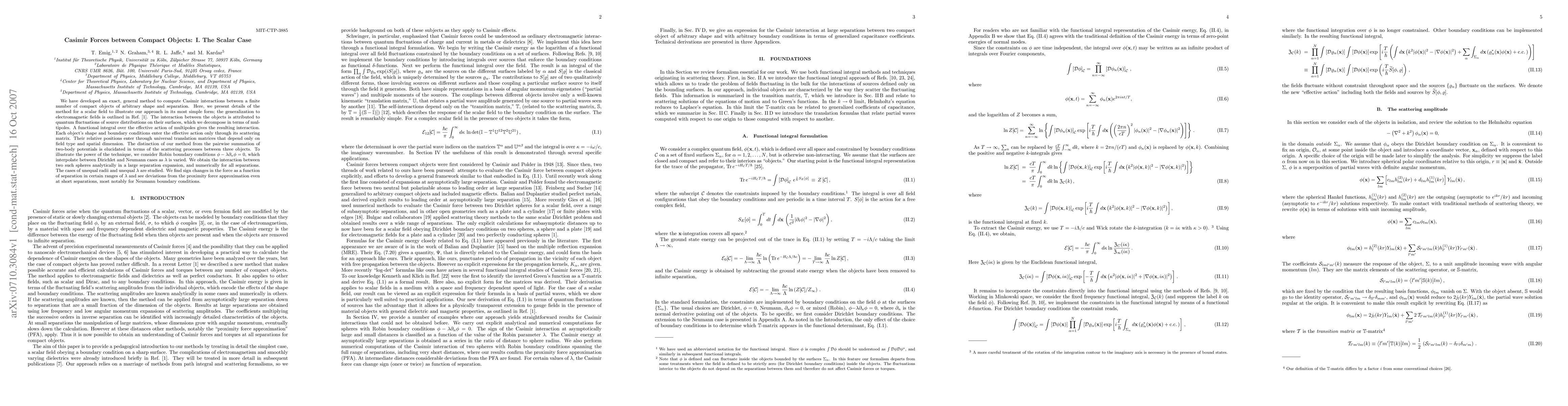 This paper presents a novel method for computing Casimir forces between compact objects using scalar fields, decomposing quantum fluctuations into multipoles. The technique generalizes beyond pairwise summation, illustrated through analytical and numerical analyses of interactions between spheres under Robin boundary conditions, revealing sign changes and deviations from the proximity force approximation.