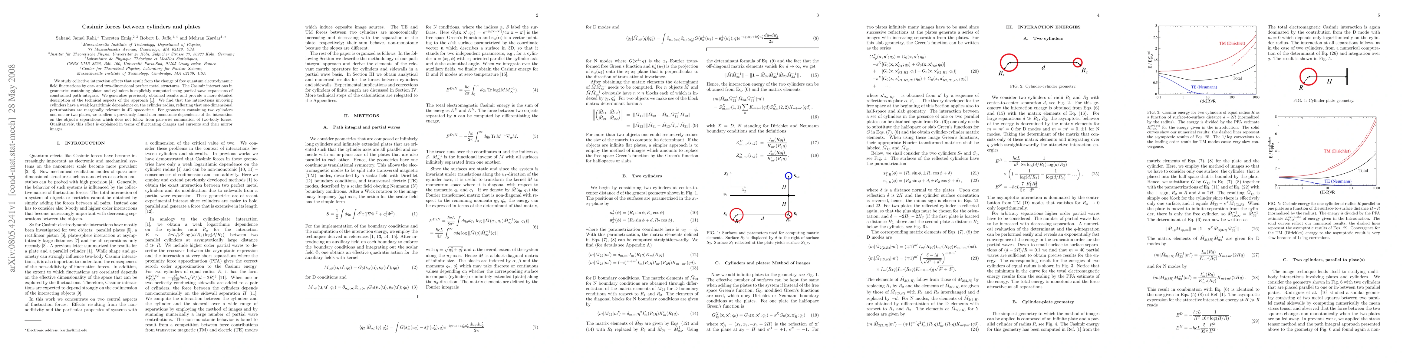 We study collective interaction effects that result from the change of free quantum electrodynamic field fluctuations by one- and two-dimensional perfect metal structures. The Casimir interactions in geometries containing plates and cylinders is explicitly computed using partial wave expansions of constrained path integrals. We generalize previously obtained results and provide a more detailed description of the technical aspects of the approach \cite{Emig06}. We find that the interactions involving cylinders have a weak logarithmic dependence on the cylinder radius, reflecting that one-dimensional perturbations are marginally relevant in 4D space-time. For geometries containing two cylinders and one or two plates, we confirm a previously found non-monotonic dependence of the interaction on the object's separations which does not follow from pair-wise summation of two-body forces. Qualitatively, this effect is explained in terms of fluctuating charges and currents and their mirror images.
