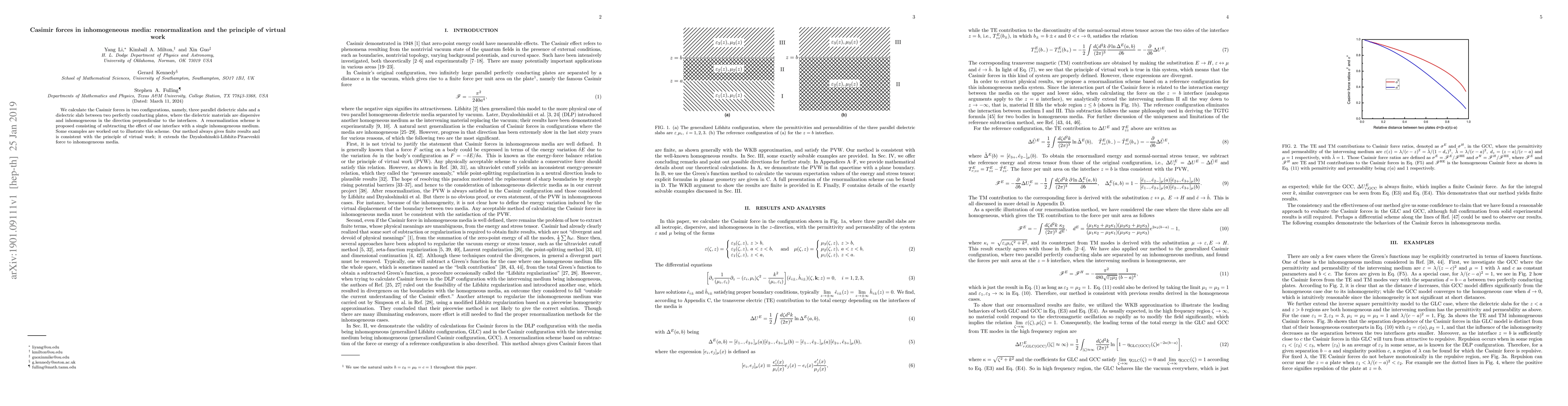This paper calculates Casimir forces in inhomogeneous dielectric media, proposing a renormalization scheme to subtract interface effects. The method yields finite results consistent with the principle of virtual work, extending the Dzyaloshinskii-Lifshitz-Pitaevskii force to such media.