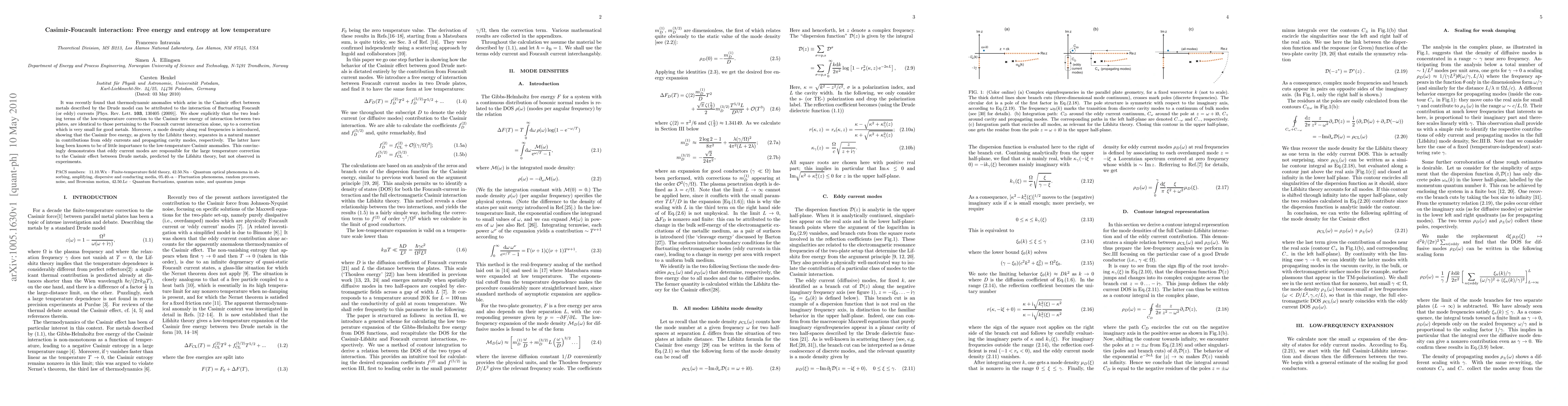 It was recently found that thermodynamic anomalies which arise in the Casimir effect between metals described by the Drude model can be attributed to the interaction of fluctuating Foucault (or eddy) currents [Phys. Rev. Lett. 103, 130405 (2009)]. We show explicitly that the two leading terms of the low-temperature correction to the Casimir free energy of interaction between two plates, are identical to those pertaining to the Foucault current interaction alone, up to a correction which is very small for good metals. Moreover, a mode density along real frequencies is introduced, showing that the Casimir free energy, as given by the Lifshitz theory, separates in a natural manner in contributions from eddy currents and propagating cavity modes, respectively. The latter have long been known to be of little importance to the low-temperature Casimir anomalies. This convincingly demonstrates that eddy current modes are responsible for the large temperature correction to the Casimir effect between Drude metals, predicted by the Lifshitz theory, but not observed in experiments.