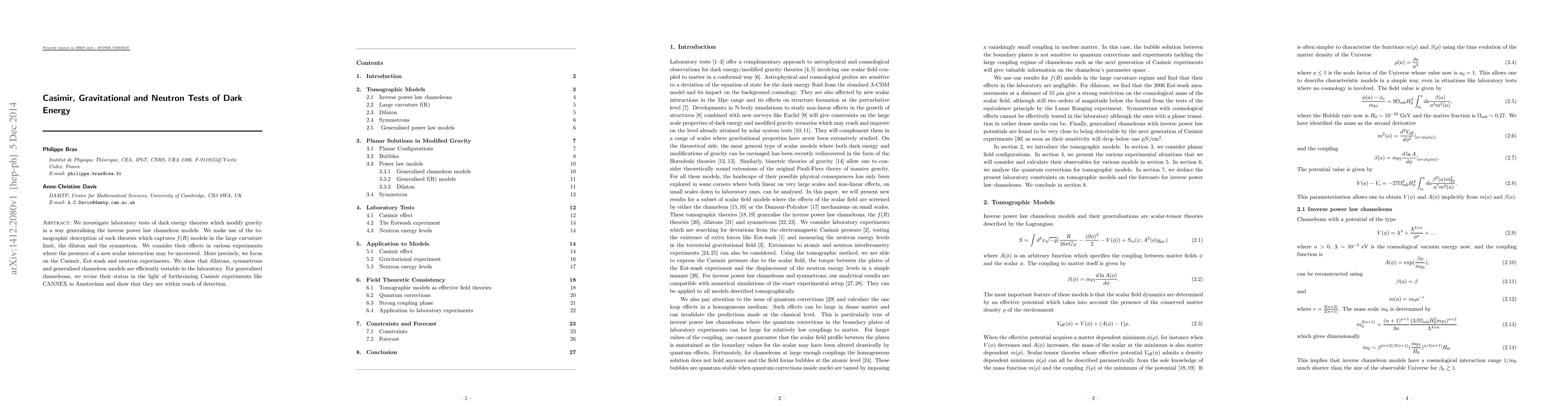 This paper explores laboratory tests of dark energy theories that generalize inverse power law chameleon models, focusing on $f(R)$ models, dilatons, and symmetrons. It highlights the potential for detecting these models through experiments like the Casimir effect, Eot-Wash, and neutron tests, emphasizing the upcoming CANNEX experiment's capability to detect generalized chameleons.