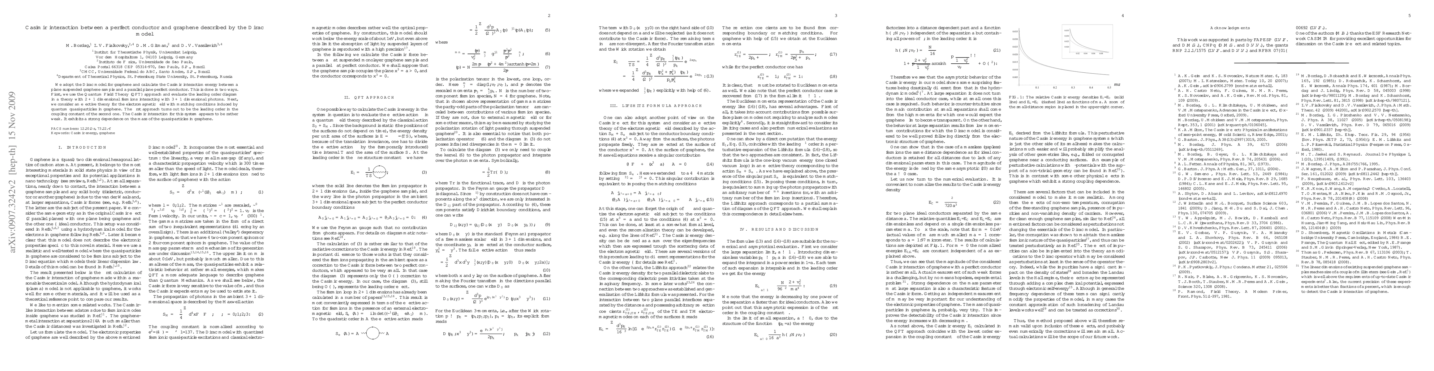 This paper calculates the Casimir interaction between a suspended graphene sheet and a parallel perfect conductor using the Dirac model for graphene, finding it to be weak and heavily dependent on the quasi-particles' mass, with a leading order result from a Quantum Field Theory approach.