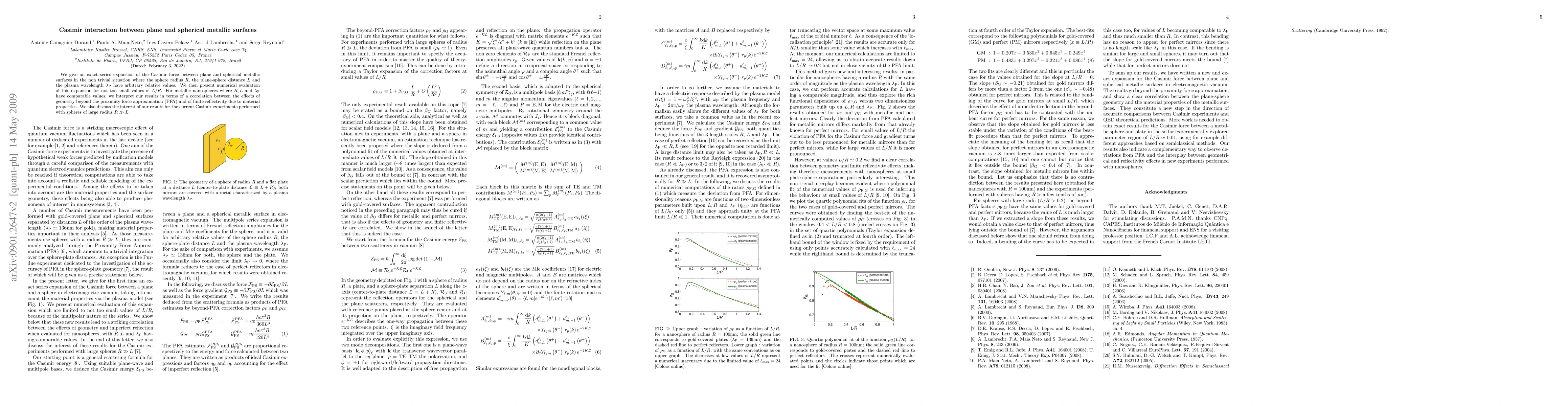 This paper provides an exact series expansion for the Casimir force between plane and spherical metallic surfaces, considering arbitrary relative sizes of the sphere radius, distance between surfaces, and plasma wavelength. The results reveal a correlation between geometric effects and material reflectivity for metallic nanospheres, and discuss their relevance to current large-radius sphere experiments.