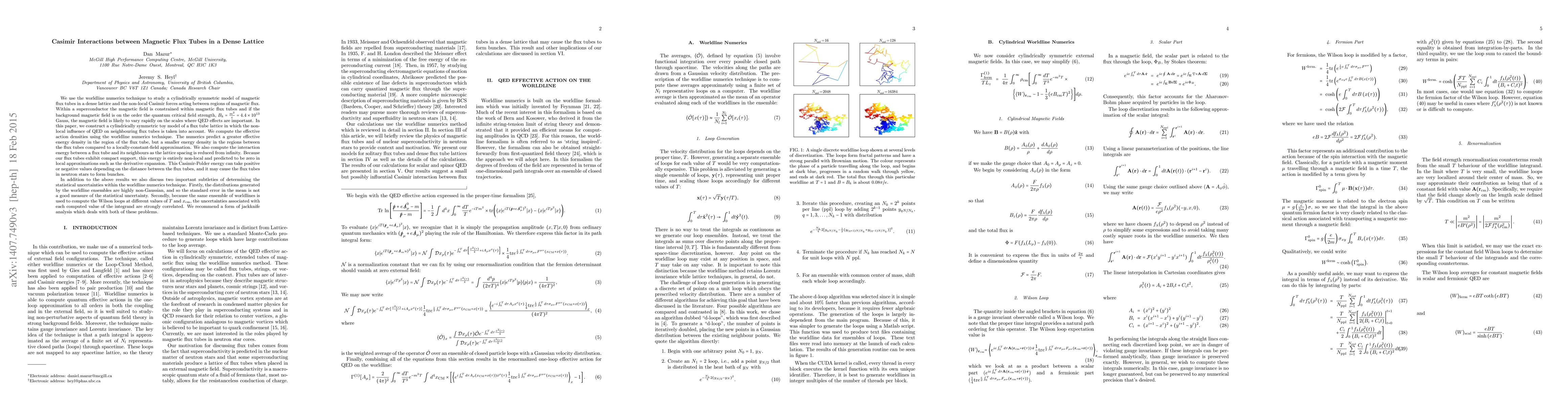 This research employs worldline numerics to investigate non-local Casimir forces between magnetic flux tubes in a dense lattice, finding greater effective energy density within flux tubes and lower density between them. The computed Casimir-Polder energy, which is non-local and depends on the distance between flux tubes, suggests that neutron star flux tubes may form bunches.