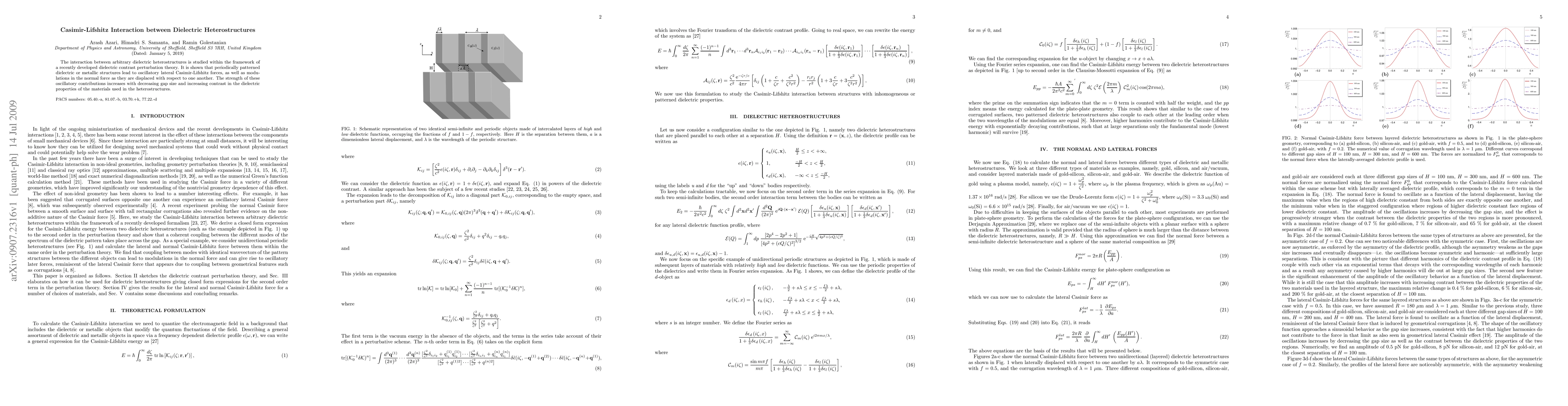 This paper explores the Casimir-Lifshitz interactions in dielectric heterostructures using a new dielectric contrast perturbation theory, revealing oscillatory lateral forces and normal force modulations that grow stronger with smaller gaps and higher dielectric property contrasts.