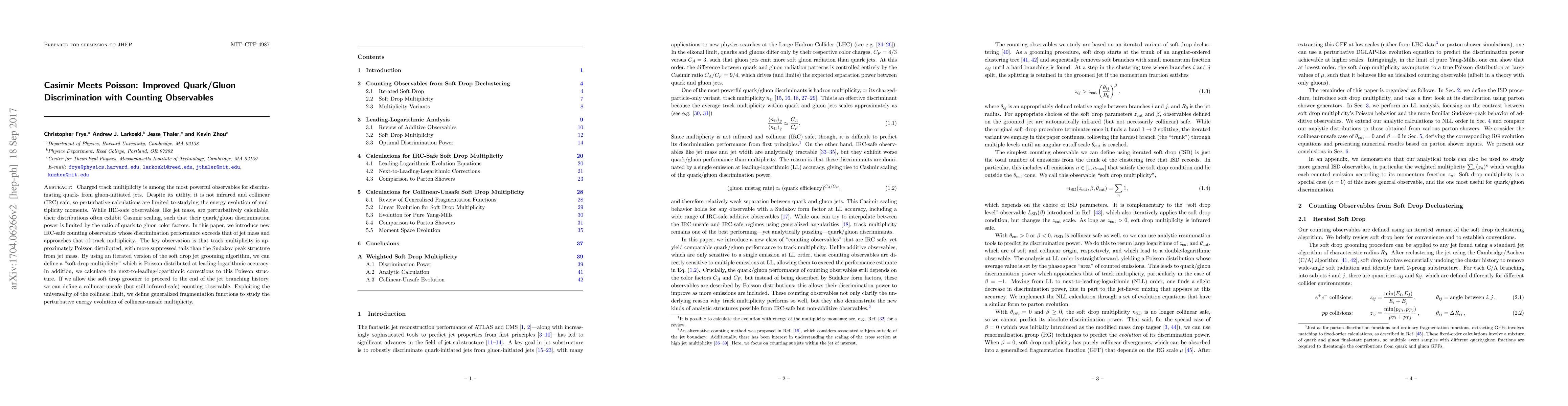 Charged track multiplicity is among the most powerful observables for discriminating quark- from gluon-initiated jets. Despite its utility, it is not infrared and collinear (IRC) safe, so perturbative calculations are limited to studying the energy evolution of multiplicity moments. While IRC-safe observables, like jet mass, are perturbatively calculable, their distributions often exhibit Casimir scaling, such that their quark/gluon discrimination power is limited by the ratio of quark to gluon color factors. In this paper, we introduce new IRC-safe counting observables whose discrimination performance exceeds that of jet mass and approaches that of track multiplicity. The key observation is that track multiplicity is approximately Poisson distributed, with more suppressed tails than the Sudakov peak structure from jet mass. By using an iterated version of the soft drop jet grooming algorithm, we can define a "soft drop multiplicity" which is Poisson distributed at leading-logarithmic accuracy. In addition, we calculate the next-to-leading-logarithmic corrections to this Poisson structure. If we allow the soft drop groomer to proceed to the end of the jet branching history, we can define a collinear-unsafe (but still infrared-safe) counting observable. Exploiting the universality of the collinear limit, we define generalized fragmentation functions to study the perturbative energy evolution of collinear-unsafe multiplicity.