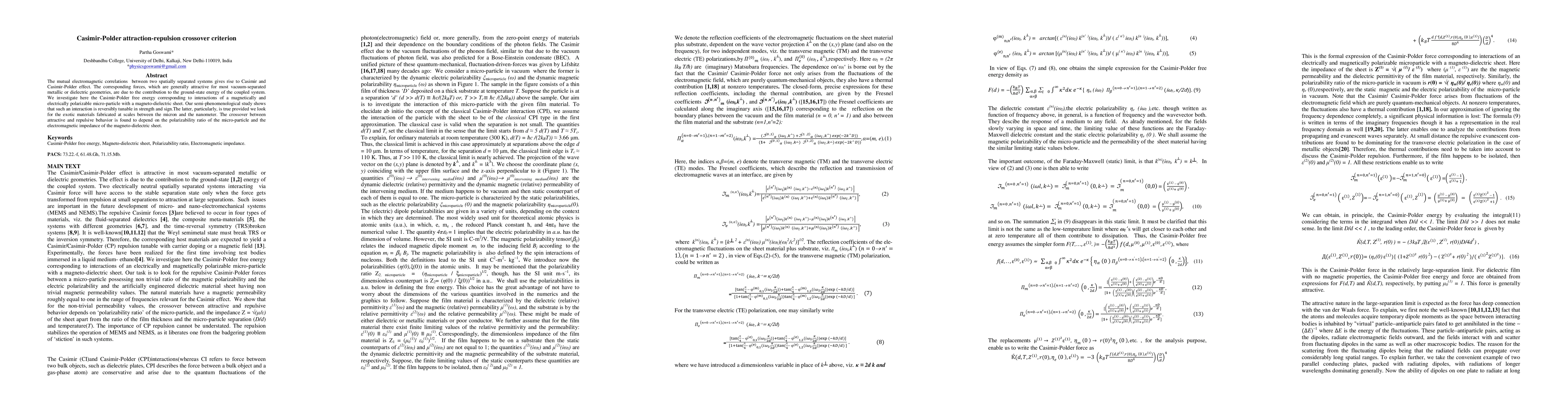 Researchers investigate how tiny particles interact with a special type of material called a magneto-dielectric sheet, finding that their attraction or repulsion can be tunable and reversible.