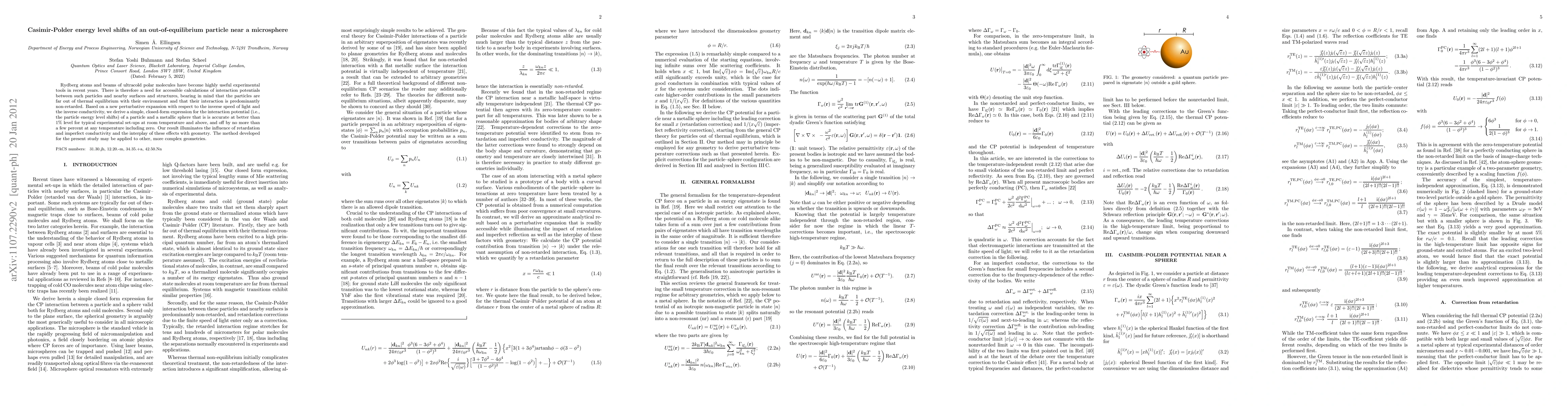 Rydberg atoms and beams of ultracold polar molecules have become highly useful experimental tools in recent years. There is therefore a need for accessible calculations of interaction potentials between such particles and nearby surfaces and structures, bearing in mind that the particles are far out of thermal equilibrium with their environment and that their interaction is predominantly non-retarded. Based on a new perturbative expansion with respect to the inverse speed of light and the inverse conductivity, we derive a simple, closed-form expression for the interaction potential (i.e., the particle energy level shifts) of a particle and a metallic sphere that is is accurate at better than 1% level for typical experimental set-ups at room temperature and above, and off by no more than a few percent at any temperature including zero. Our result illuminates the influence of retardation and imperfect conductivity and the interplay of these effects with geometry. The method developed for the present study may be applied to other, more complex geometries.